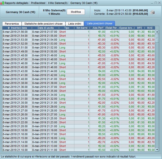 Vi allego la schermata del backtest in cui ad esempio l’ultima operazione la apre alle 11:30 e la chiude alle 11:35 per poi dopo aprirne un’altra. Il problema è che deve aprirmela ad ogni candela.