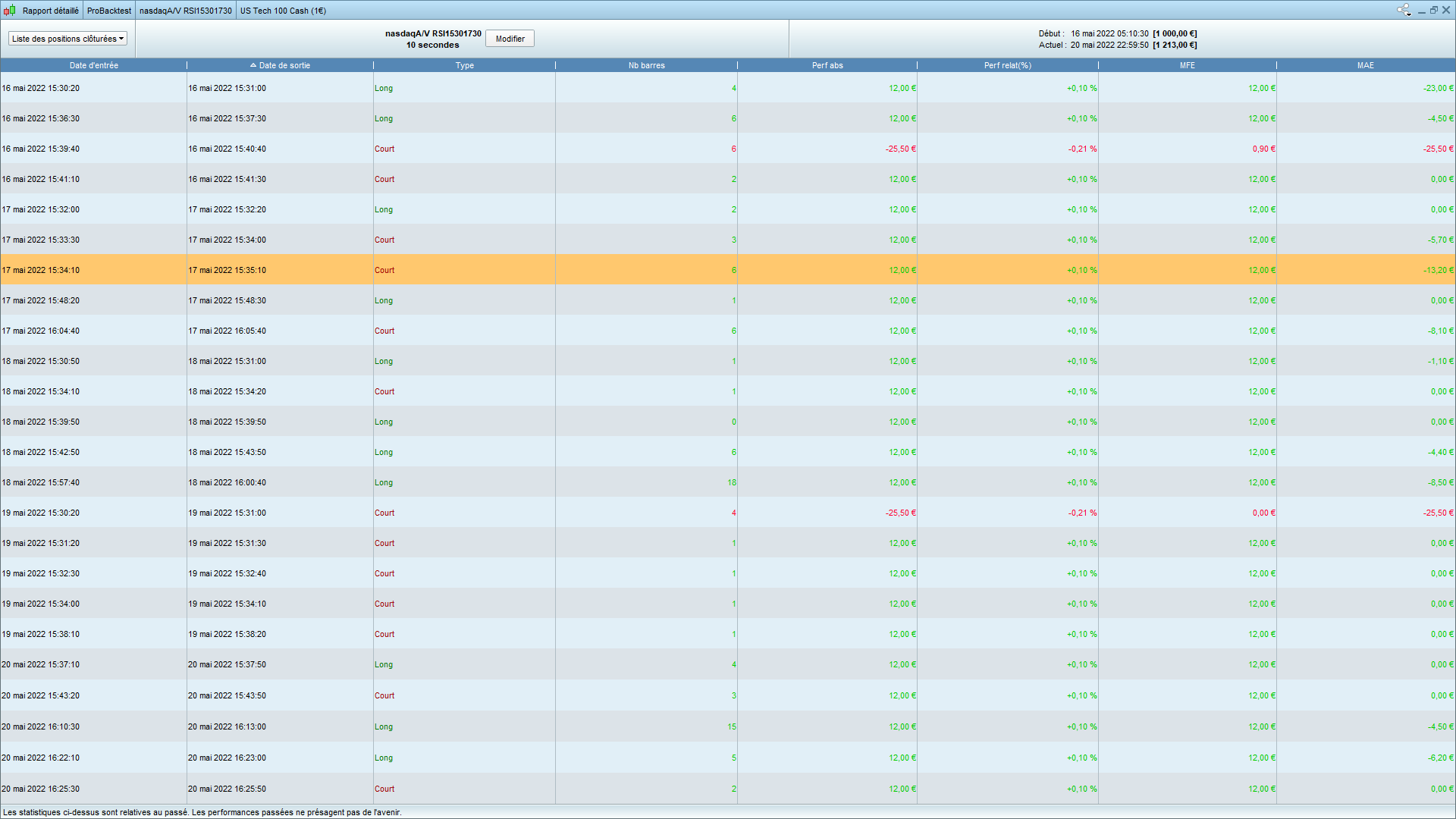 Pour le 30 sec j’ai du utiliser la partie 2 les résultat était meilleurs avec juste 2 trades tp 11 et st 28