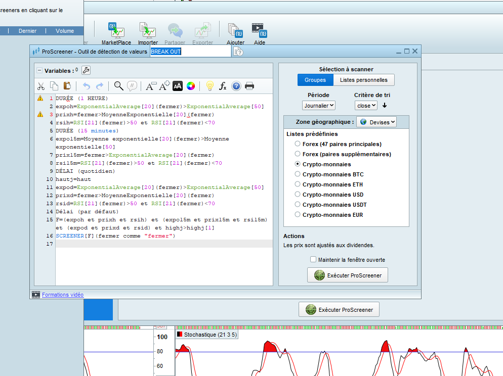en fait je voudrais ajouter une condition de Breakout sur le screener acheteur et de breakdown sur le screener vendeur en journalier uniquement