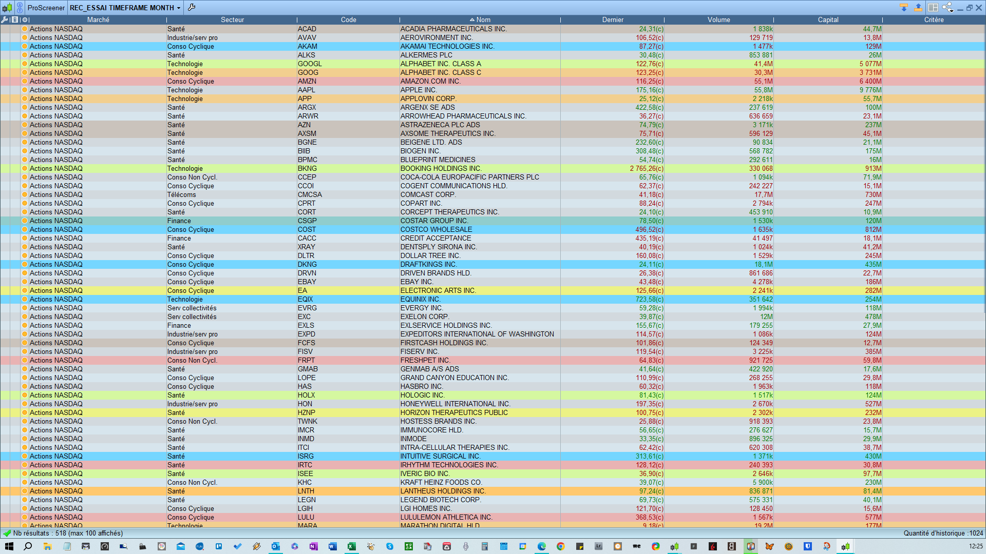 Le screener ne remonte que les valeurs ayant côté lors du dernier jours de cotation.