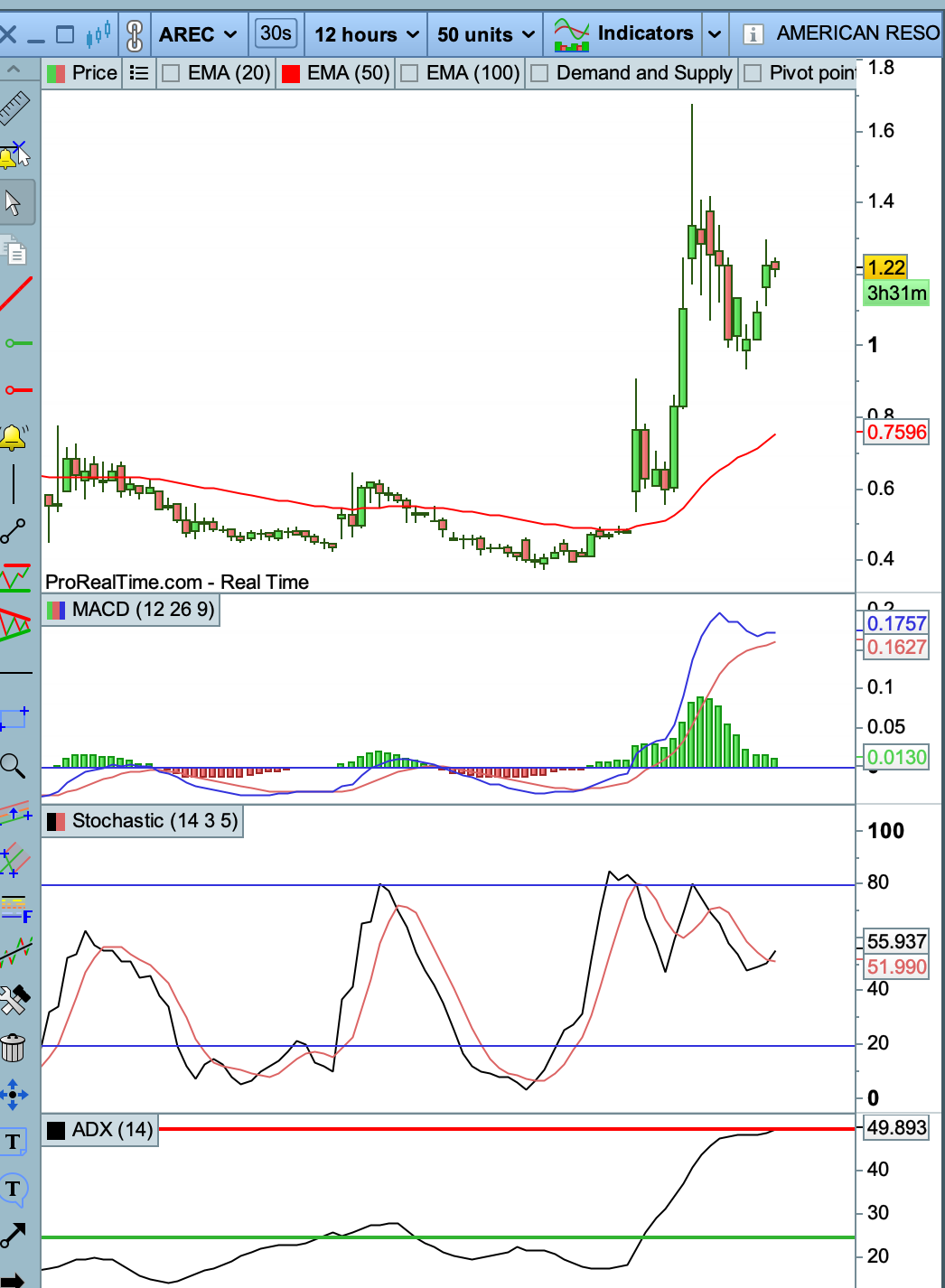 I’d like some help in coding a screener in ProRealTime to catch this setup before the breakout candle forms, as shown in the attached chart (OMEX, daily, and AREC, 12hrs). I’m often too late by the time it appears, so I want to be alerted right before the move.