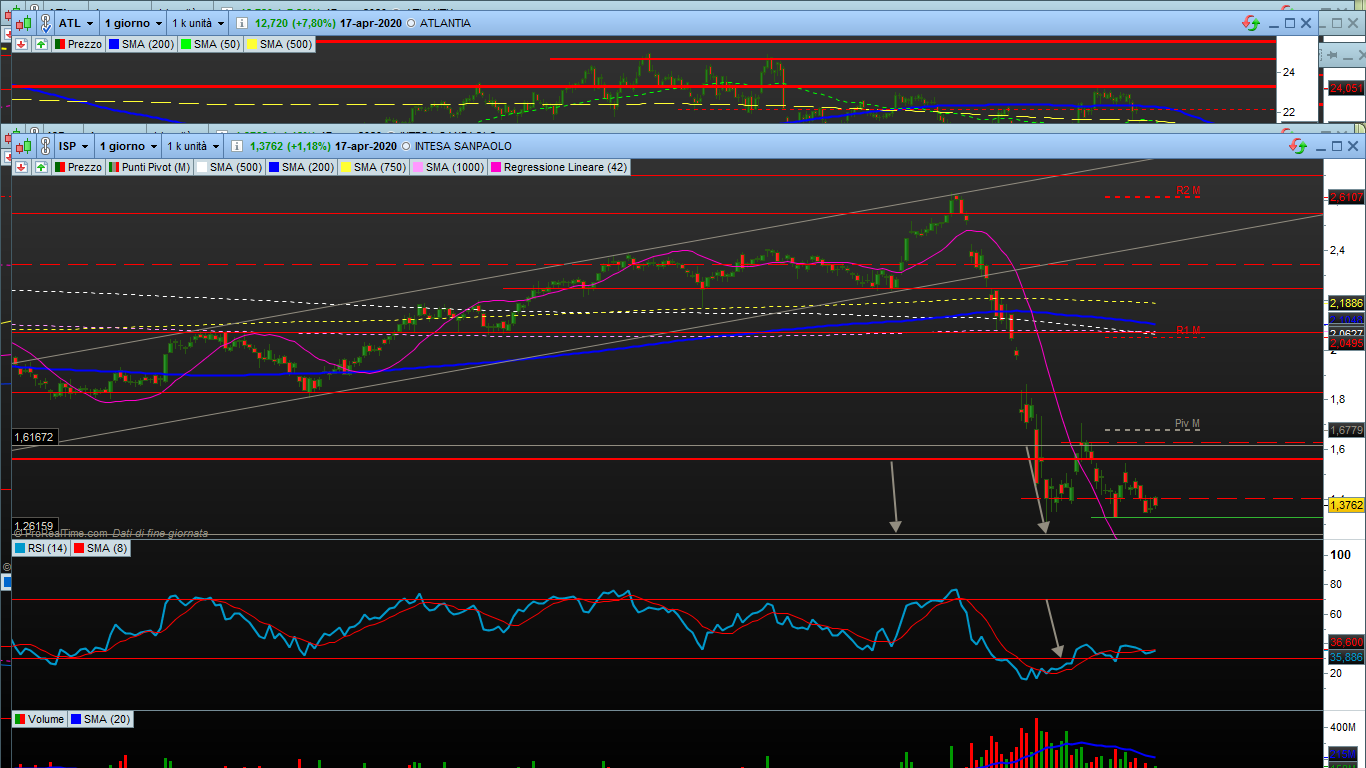 Roberto chiedevo invece qui un aiuto per un codice proscreener che estragga sempre su grafici giornalieri i titoli che hanno una media semplice a 8 periodi di rsi (14) che curva verso l alto come nell esempio di intesa san paolo che ho allegato, cioè non seguire l rsi ma la sua media mobile per l operazione. Se fosse troppo difficile potremmo fare la media a mobile a 8 periodi di rsi (14) che passa a rialzo il livello di 20 (dell rsi). Se potessi poi indicarmi un altro proscreener da usare per gli ETF a ribasso con gli stessi canoni e, se non possibile che incroci a ribasso la media il livello di 80. . Grazie mille. buon pomeriggio