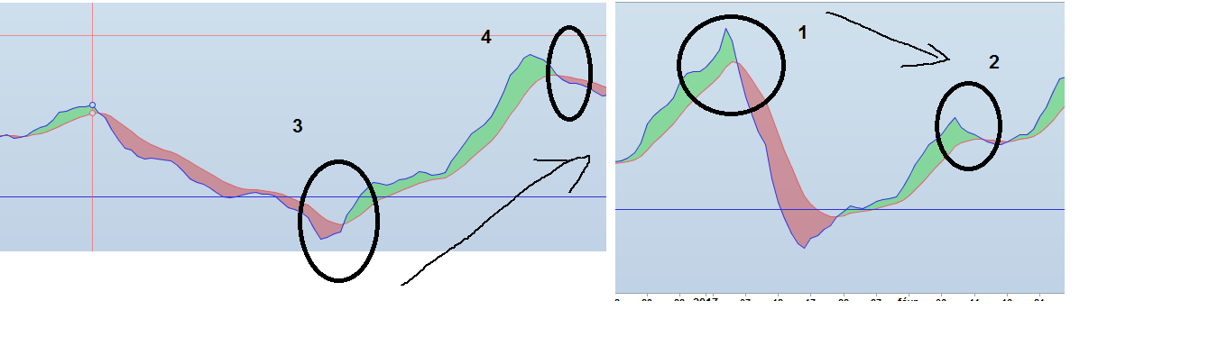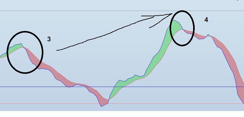 Désicedemnt je m’y perd. C’est 2 croisements baissier successifs que je veux donc pour le 4 et 3 voici le bon exemple ci-joint.