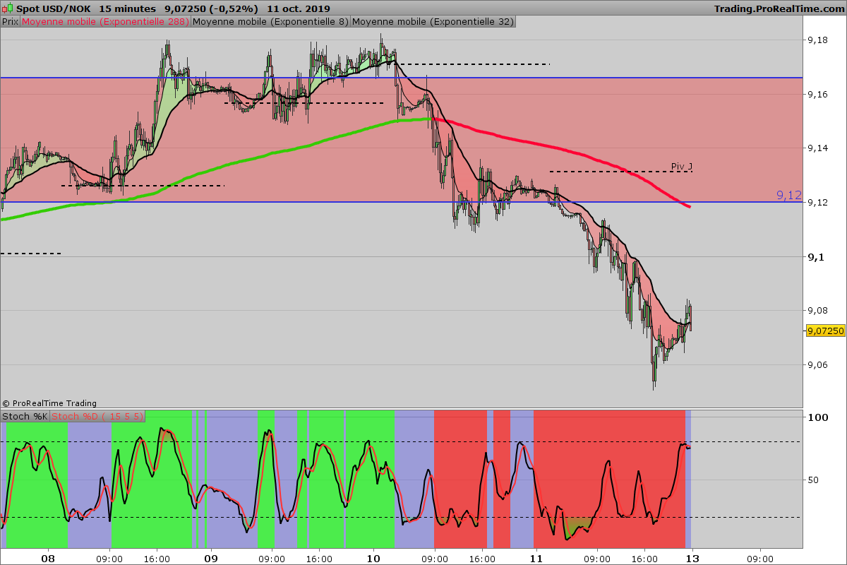 Les critères sont simple croisement du stoch dans zone de surachat ou survente (20/80) en 15 minutes.