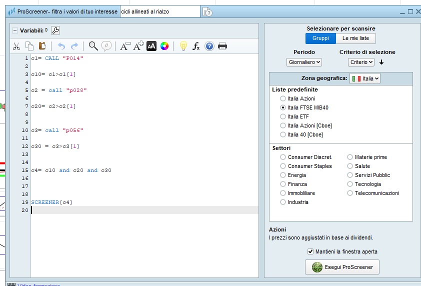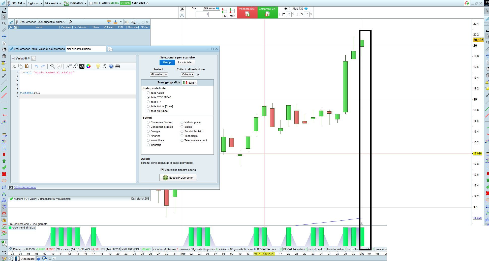 Nella foto che ho allegato, potete vedere che sul titolo stellantis l’indicatore è a 1, ma se lancio lo screener sul ftse40 non ho risultati?? potete aiutarmi?? grazie
