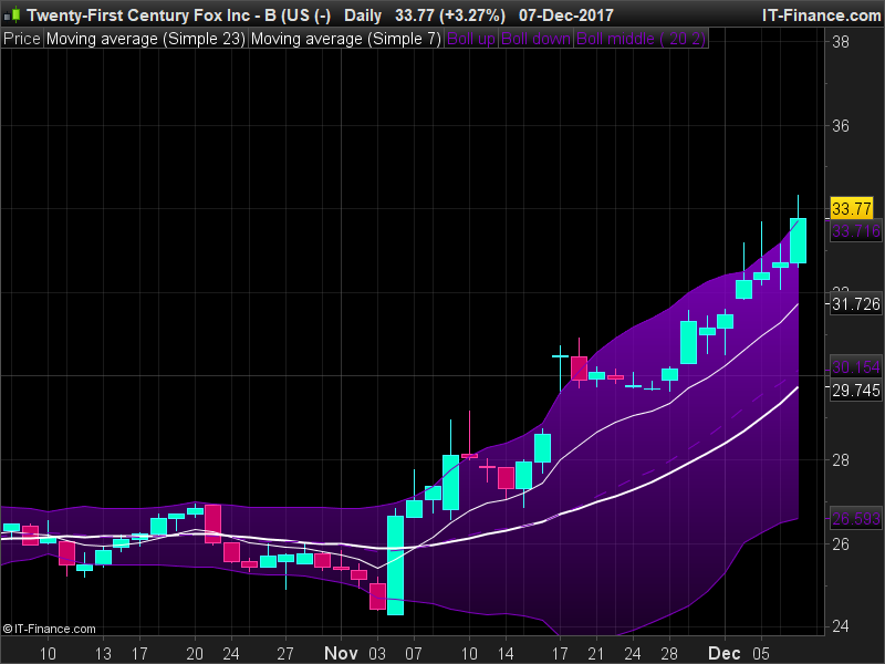 début d’écartement des bollingers lors de la sortie des cours des bandes billingers.