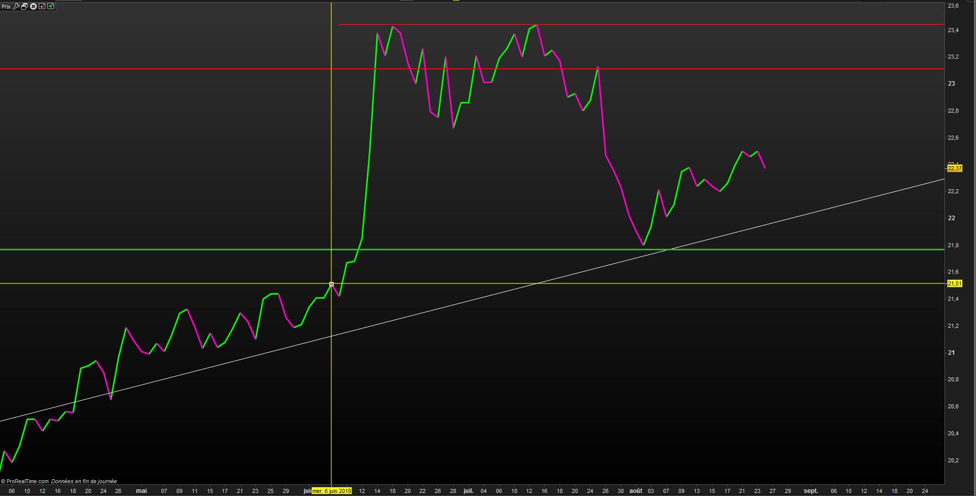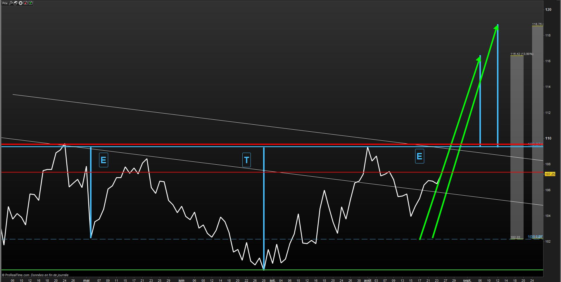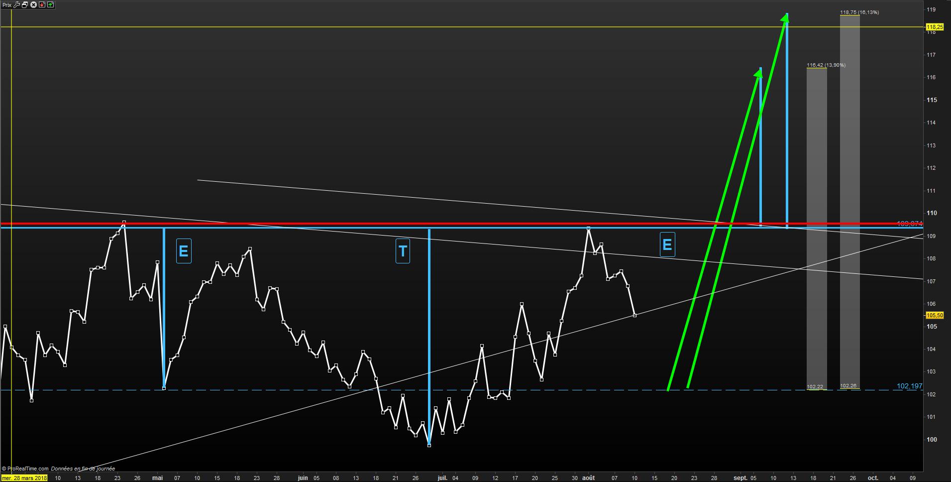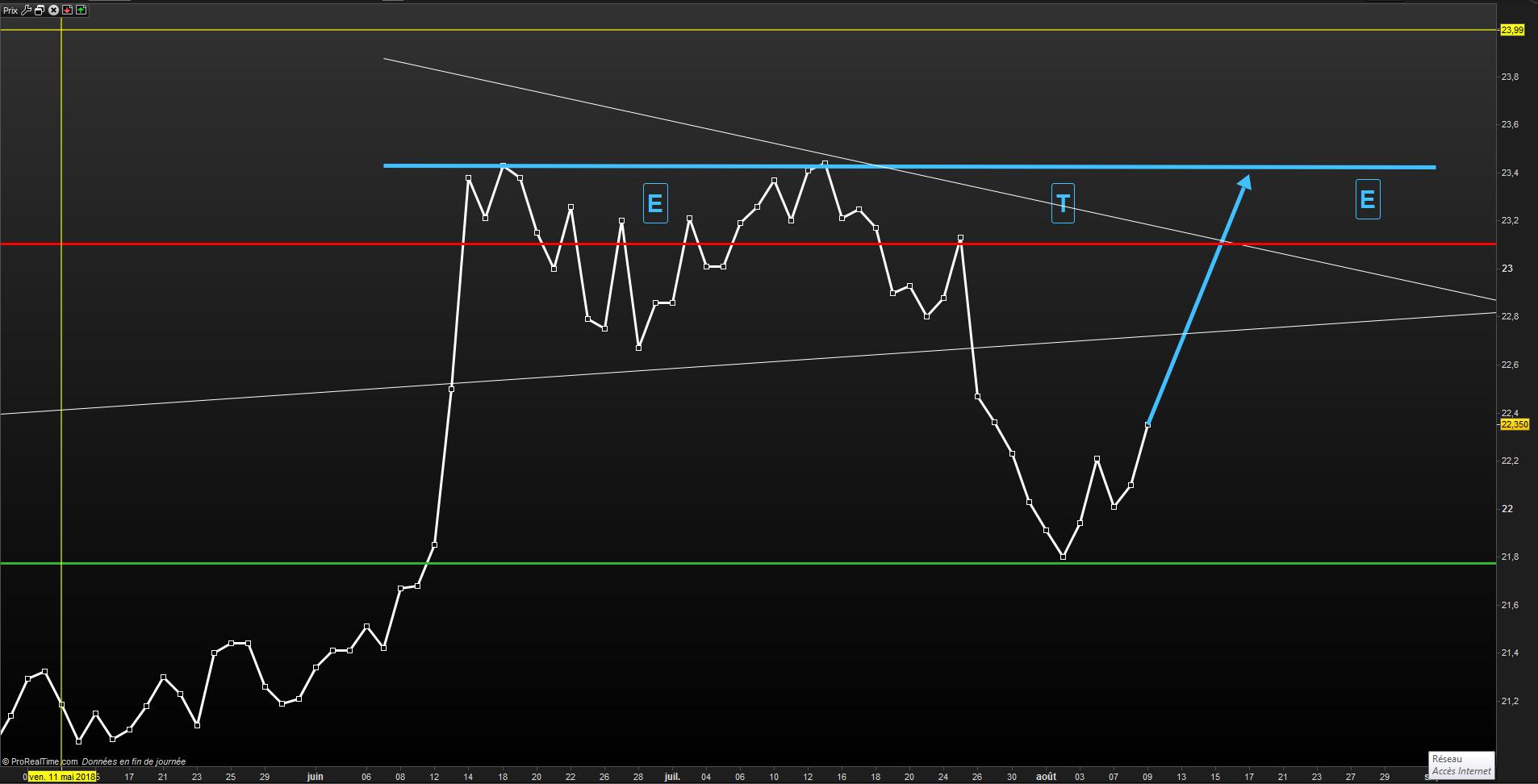 Depuis le 10.08 Arkema a pris + 3.1 % depuis le plus bas formant la deuxieme épaule