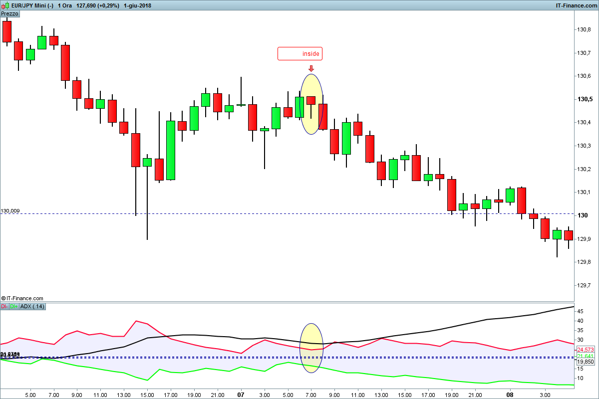 Vorrei creare una versione ribassisata l’ADX che deve partire da un valore basso sotto i 20 punti per poi avere un trend ribassista l’adx deve essere maggiore di 21 punti e che la direzionalità ribassista -DMI sia maggiore di quella rialzista +DMI.