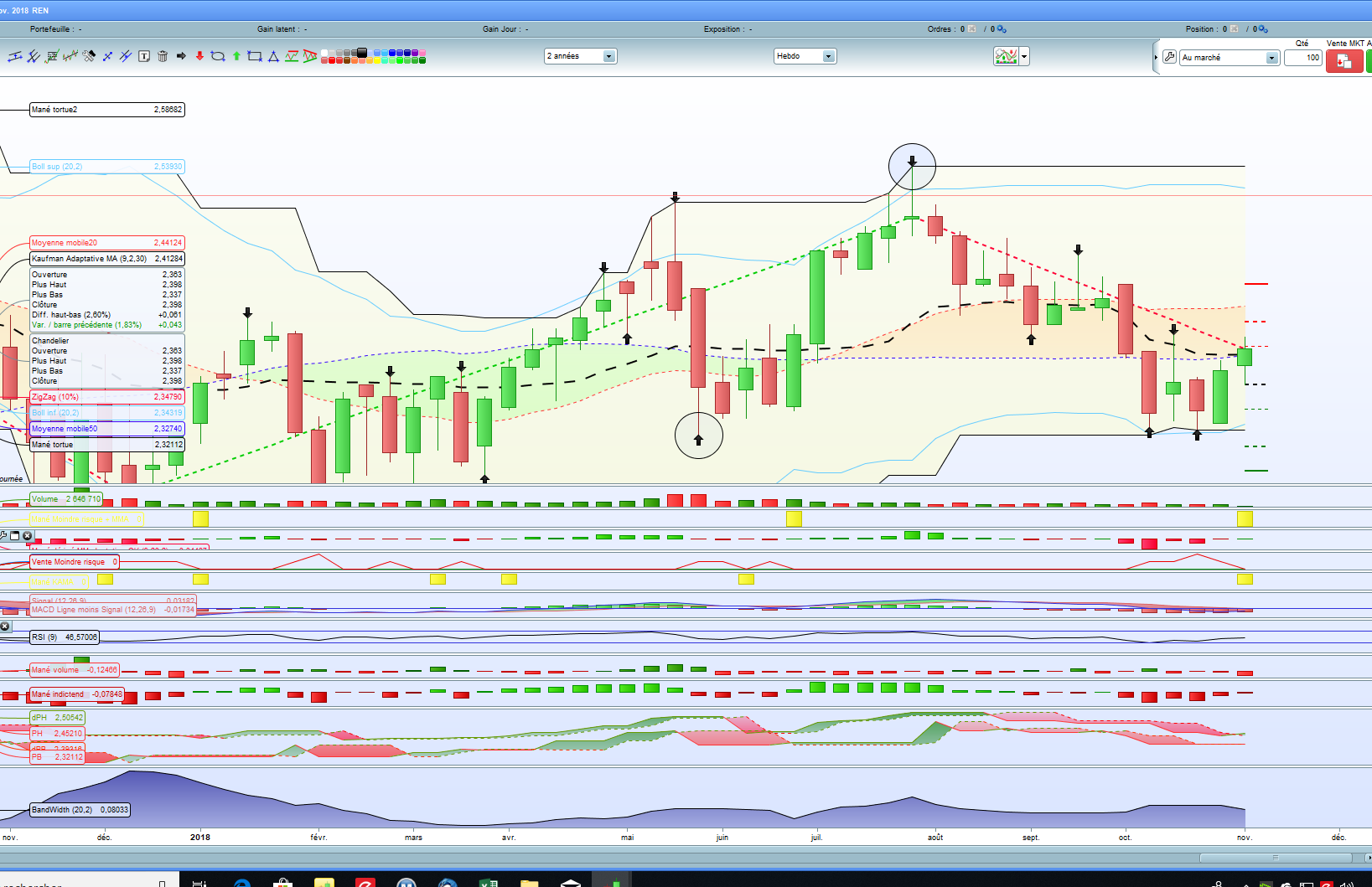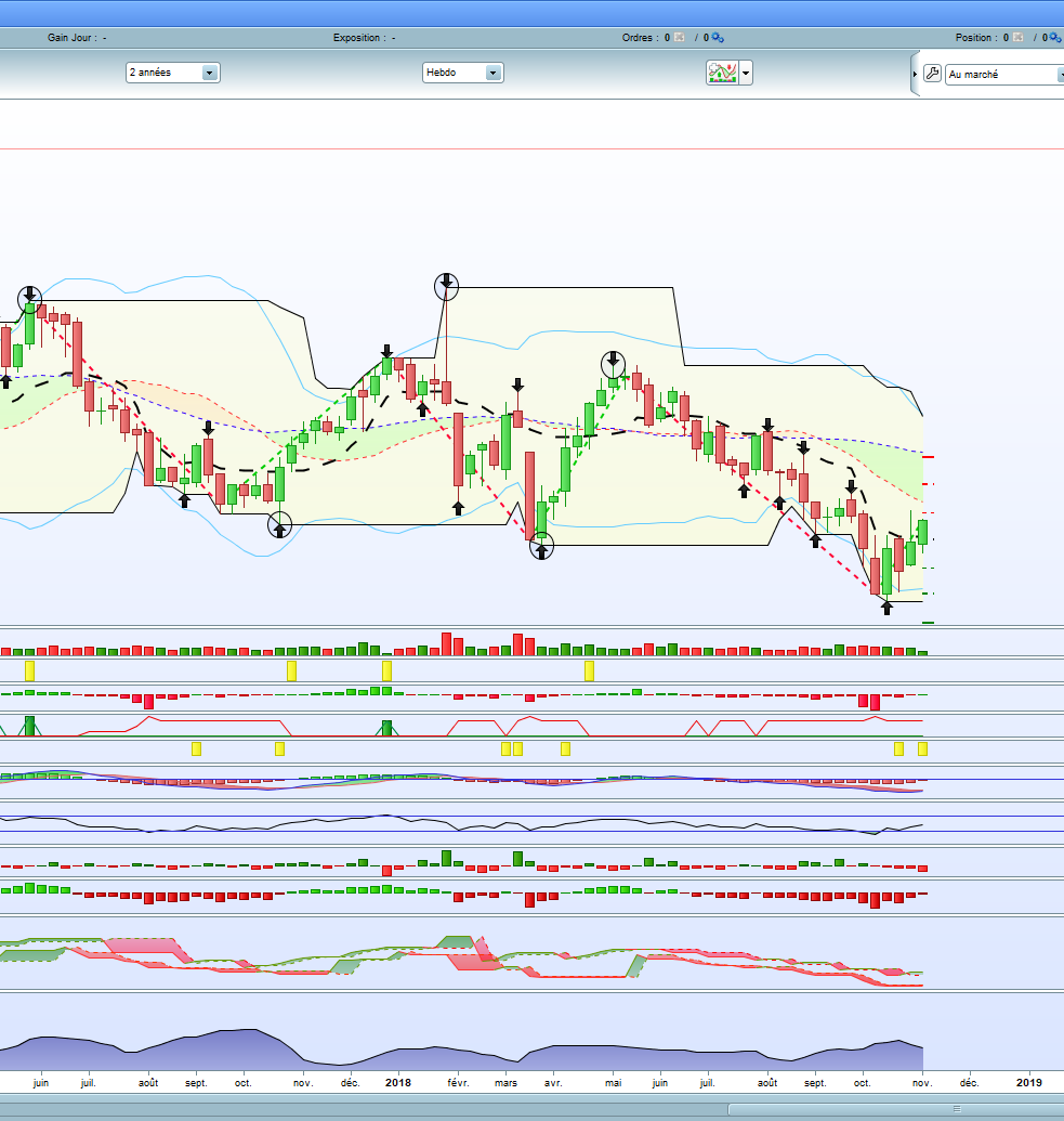 je n’ai pas un abonnemnt temps réel de Prorealtime je crois que c’est cela qui pose le problème. Quand je prends n’importe quel indicateur en Weekly il ne correspond pas à ce que je vois sur le graphe (ex pour la largeur des bandes de Bollinger). Je crois que c’est du à une histoire de décalage de jour pour les données weekly en gratuit dans prorealtime. N’est-il pas possible de contourner ce problème sans abonnement ?