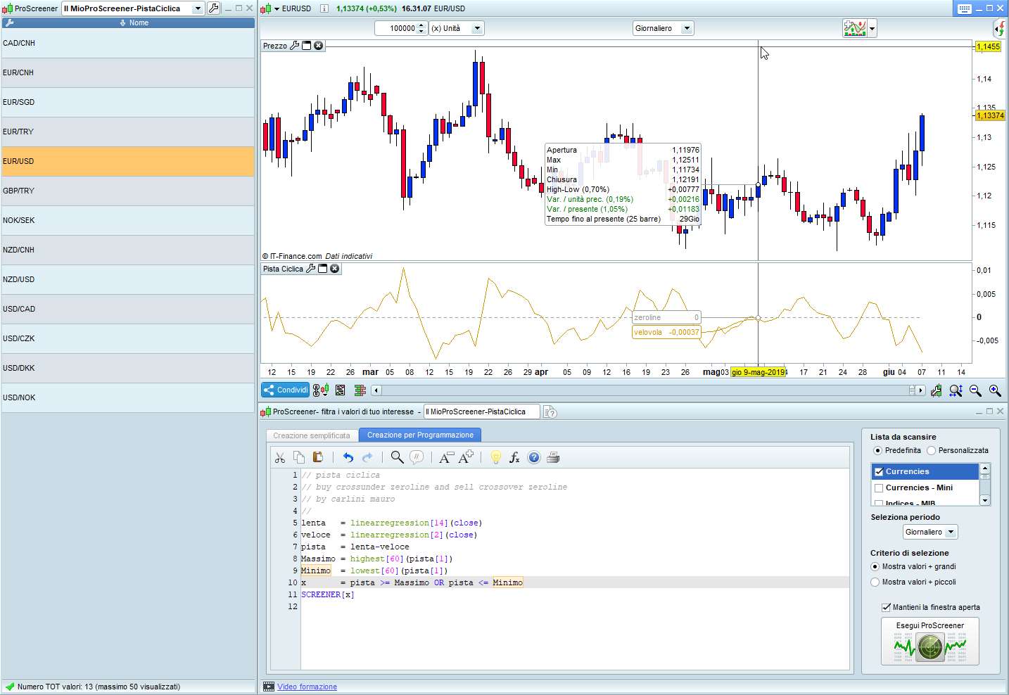 Vorrei il vostro aiuto per poter creare uno screener con l’indicatore Cyclical Path