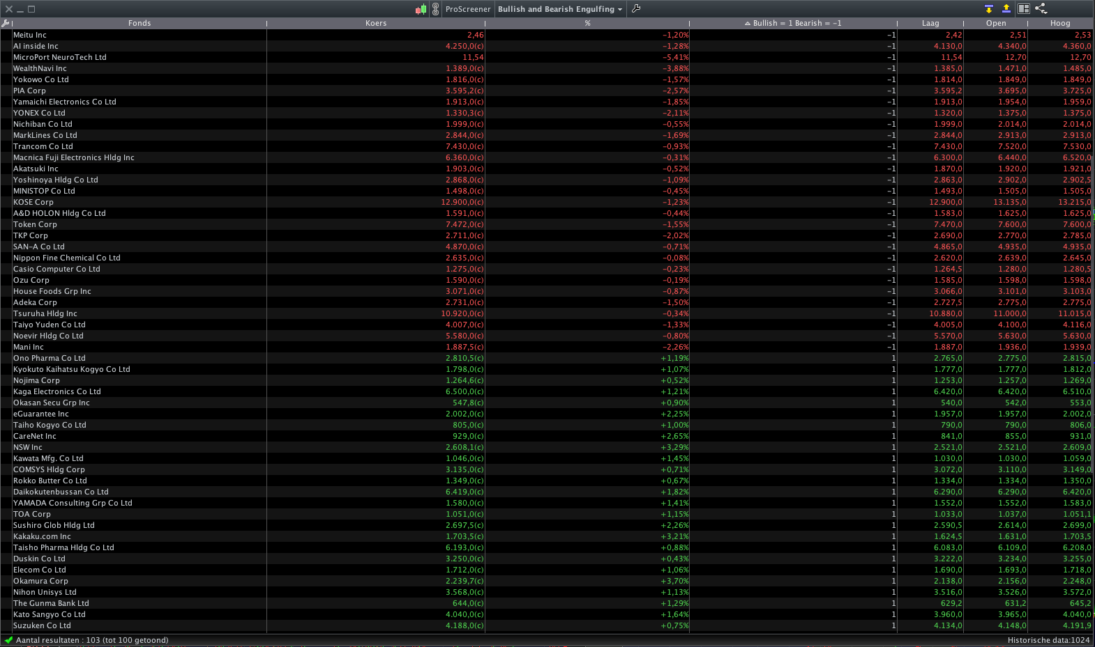Here is an example of a screener that shows 1 for bullish and -1 for bearish…