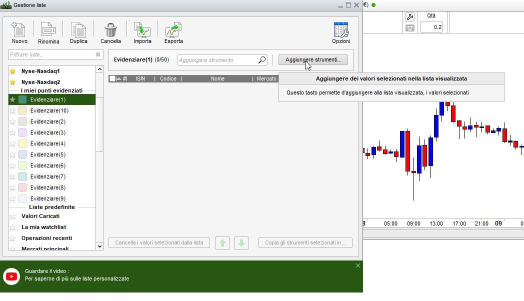 Devi creartela tu stesso. Vai nella gestione delle liste ed inserisci, in una di quella EVIDENZIATE (o in più di una), gli strumenti che t’interessano.