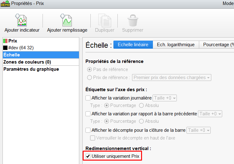 Pour que visuellement, on ne la voit plus, il faut modifier l’échelle du graphique en utilisant uniquement le prix (voir image).