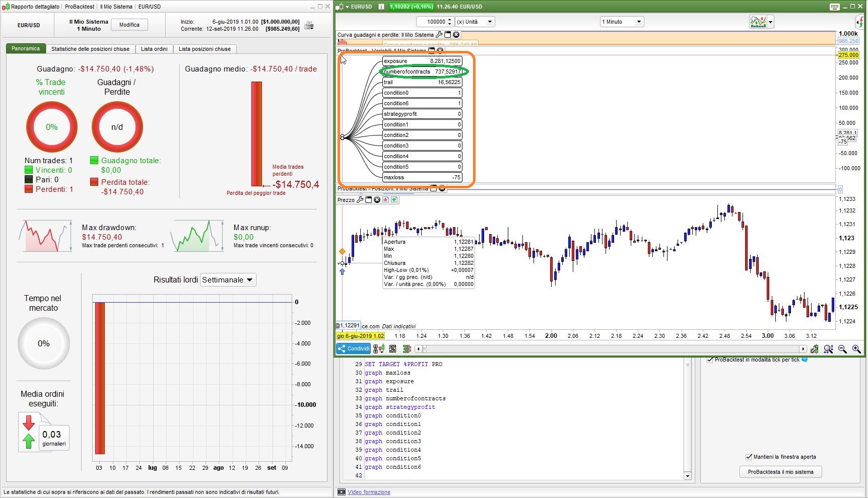 you’ll be able to GRAPH all variables needed to debug your code to be able to detect errors, by watching the VARIABLES’ window in ProBackTest.