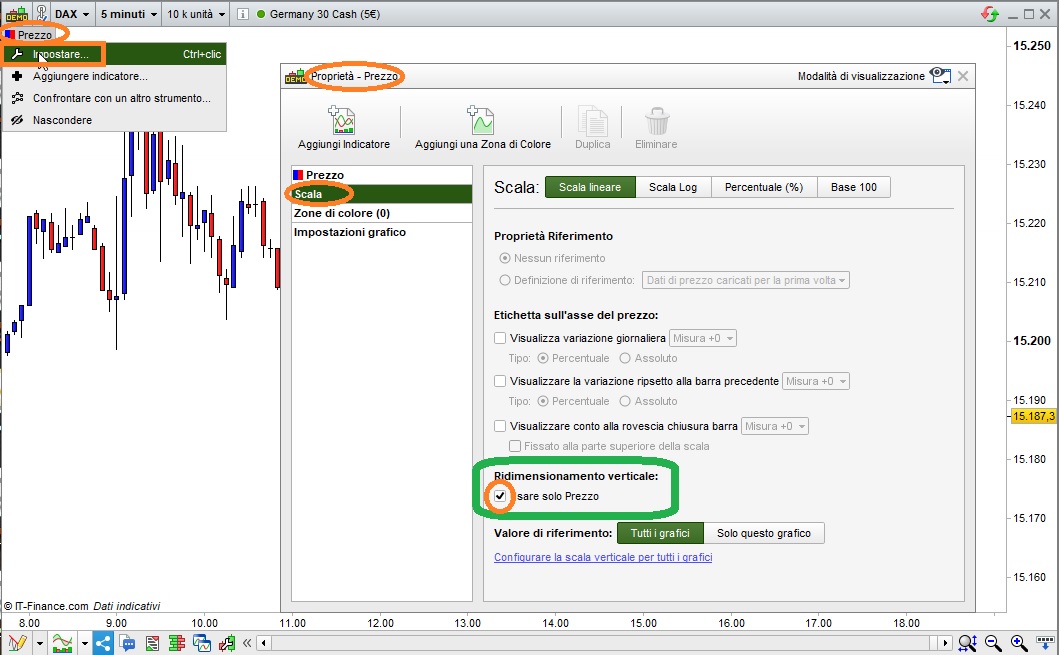 De hecho, aplica un indicador que tiene una escala diferente a la del precio en el gráfico de precios. Hay una razón específica? Le aconsejo que elimine este indicador y su problema se resolverá (o utilice el método descrito por Roberto).