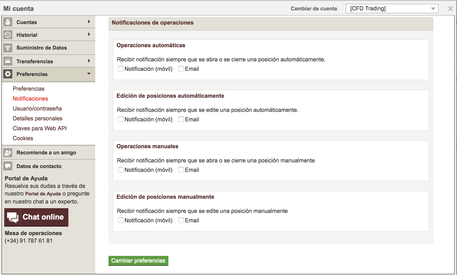 Entiendo que se puede hacer en función de lo que permita el bróker. En mi caso con IG puedo ser notificado vía lo especificado en la plataforma web como puede verse en el adjunto.