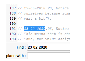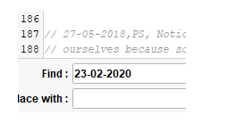 We search for something in the Editor. The result will be there – see 2nd attachment. Sadly the result hides under the popup for the search boxes. Now I need to scroll down to see the result.
