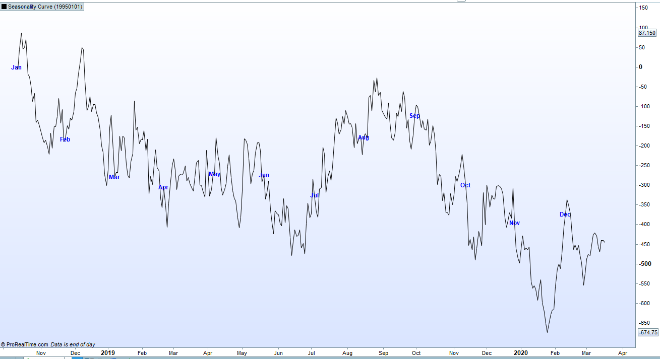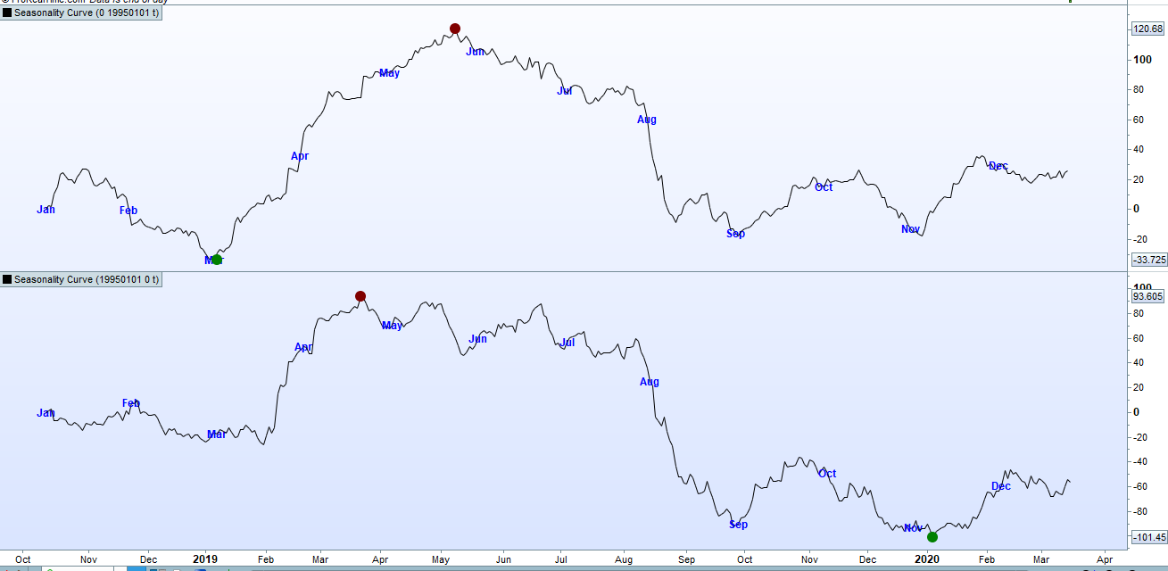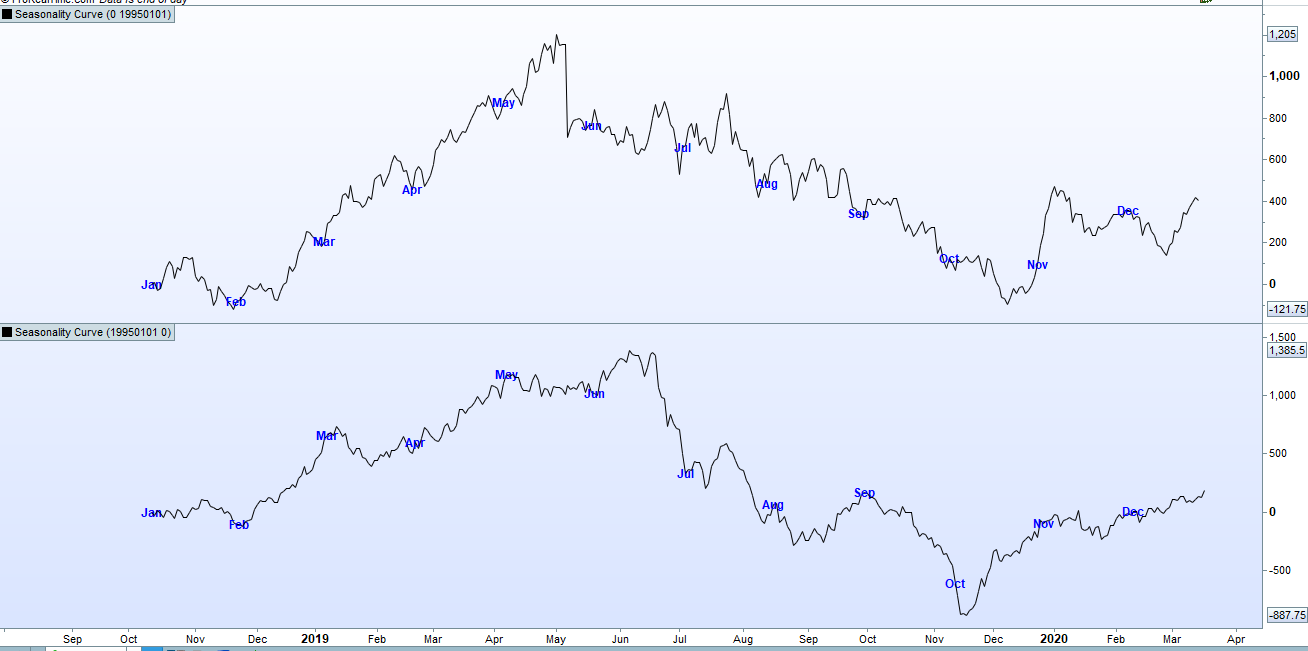 In the attached image of wheat we can see that the top graph which analyses the start of the 60’s up to the end of 1994 has very distinct seasonality but the lower graph which analyses from the start of 1995 to the present day is much more erratic and although some periods show similar seasonality it is in truth a very different chart.