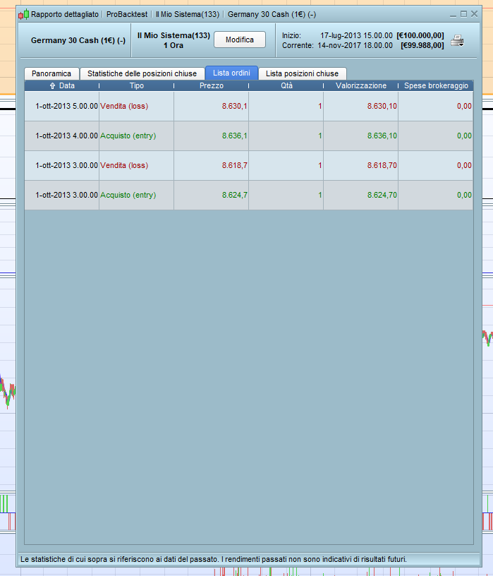 Ciao Roberto ho ricopiato tutto il codice e controllato di averlo copiato bene ed è tutto apposto. ho inserito 100.000 euro di capitale iniziale, ma mi fa solo due operazioni e mi si ferma. ti posto uno screen. Testato su dax h1