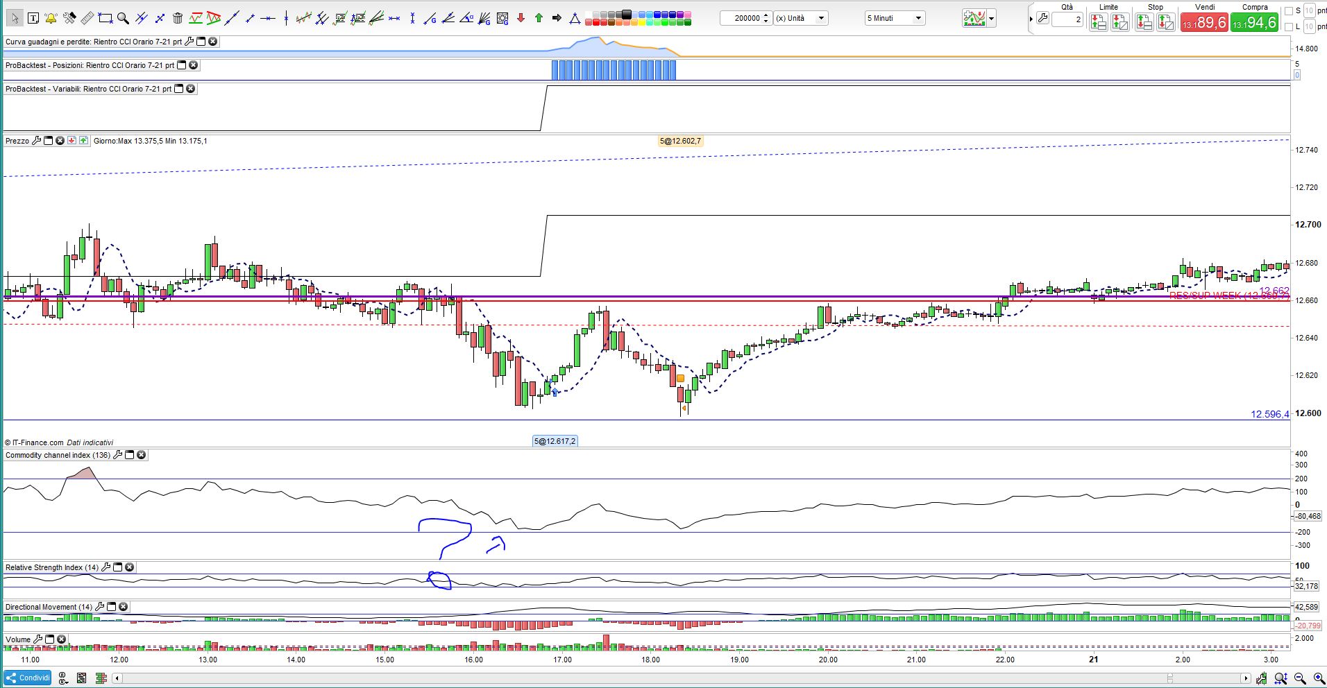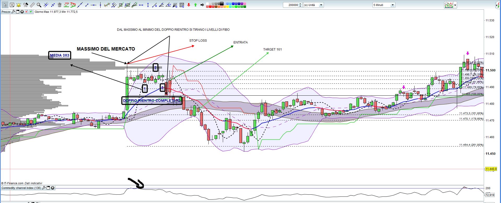 si è un dax 5 minuti l’entrata è errata perchè il CCI 136 periodi non è mai rientrato da -200 quindi non mi spiego