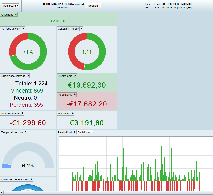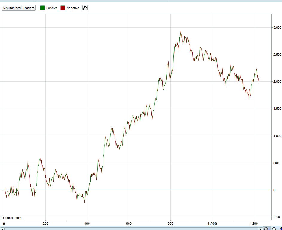Risultati non eclatanti, bella % trade on, ma basso gain, forse è da migliorare.