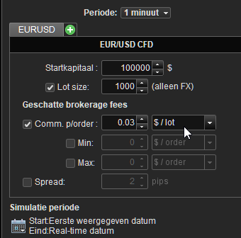 Your first problem is more “severe” : you need to enter the Broker Fee (Commission). And, what I did below will not be correct for the instrument you chose and which looks to be the EUR/USD Mini which (somehow) I can not find (unless it is a Future). I assumed you are in the PRT-IB version. Also, you will need V12 (PRT-IB version) in order to be able to enter the correct commission amount, plus in V11 the calculation of the commission in backtest is wrong (my screenshot is from V11).