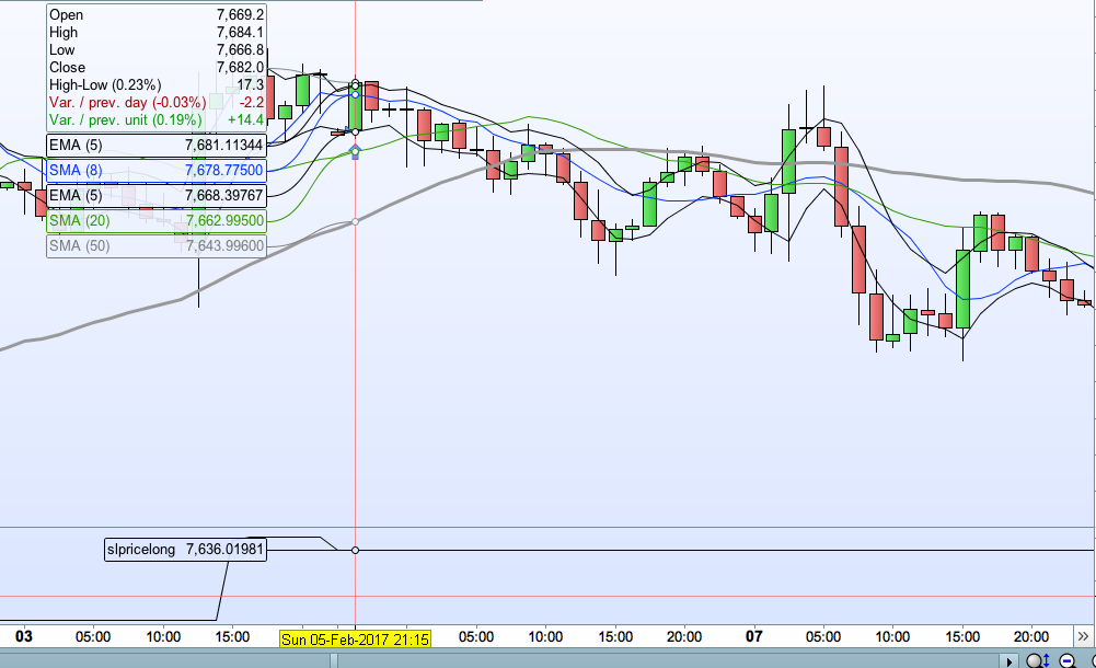 - I don’t want the sell to be triggered by something that is calculated on the close of every bar (because on a 75-minute chart, that is a very big time delay)