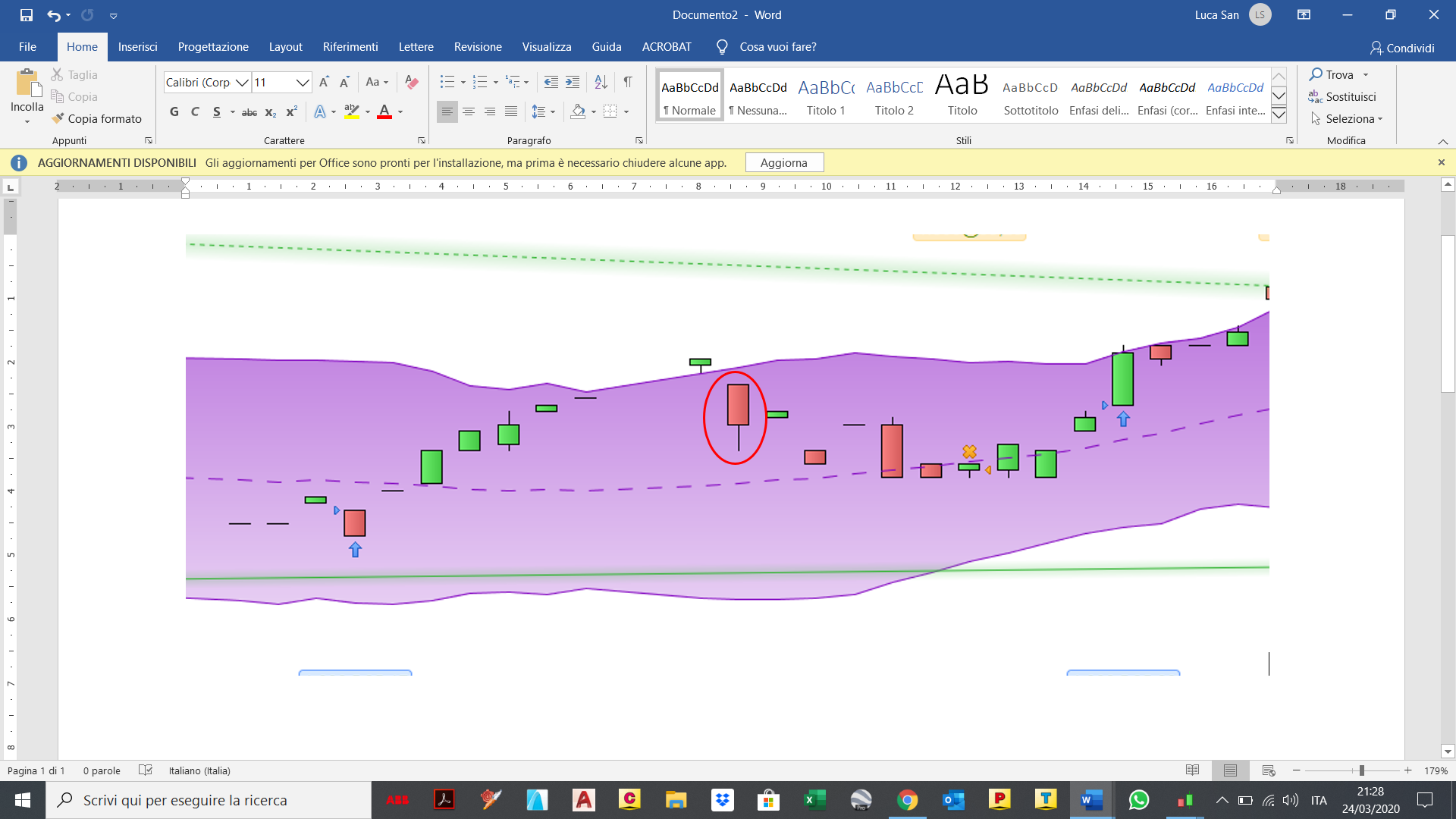 Verifica che quel LOW della candela verde sia realmente SOPRA alla banda bollinger, basta che tenga il mouse fermo su quella barra e ti appariranno i valori della candela e degli indicatori, così capirai se è davvero sopra oppure no.