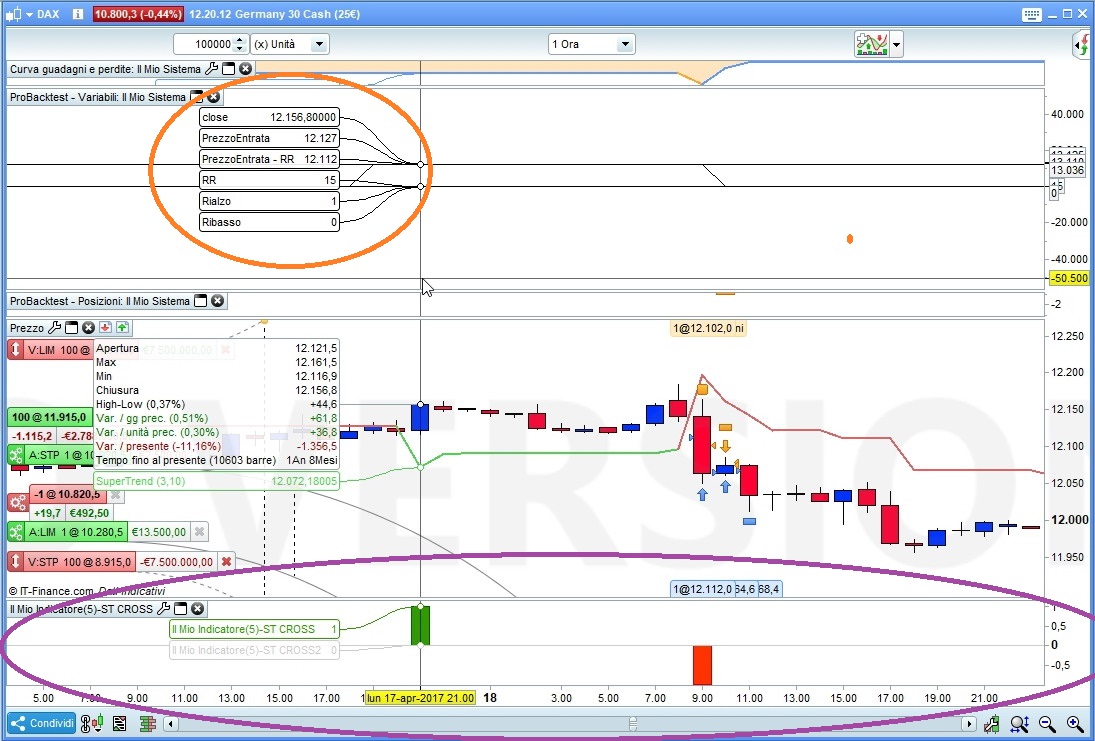 Ho scritto il codice di un ProOrder che utilizza il SuperTrend per entrare in posizione. L’idea è quella di entrare su un ritracciamento di RR punti (dove RR è una variabile sottoposta poi ad ottimizzazione).