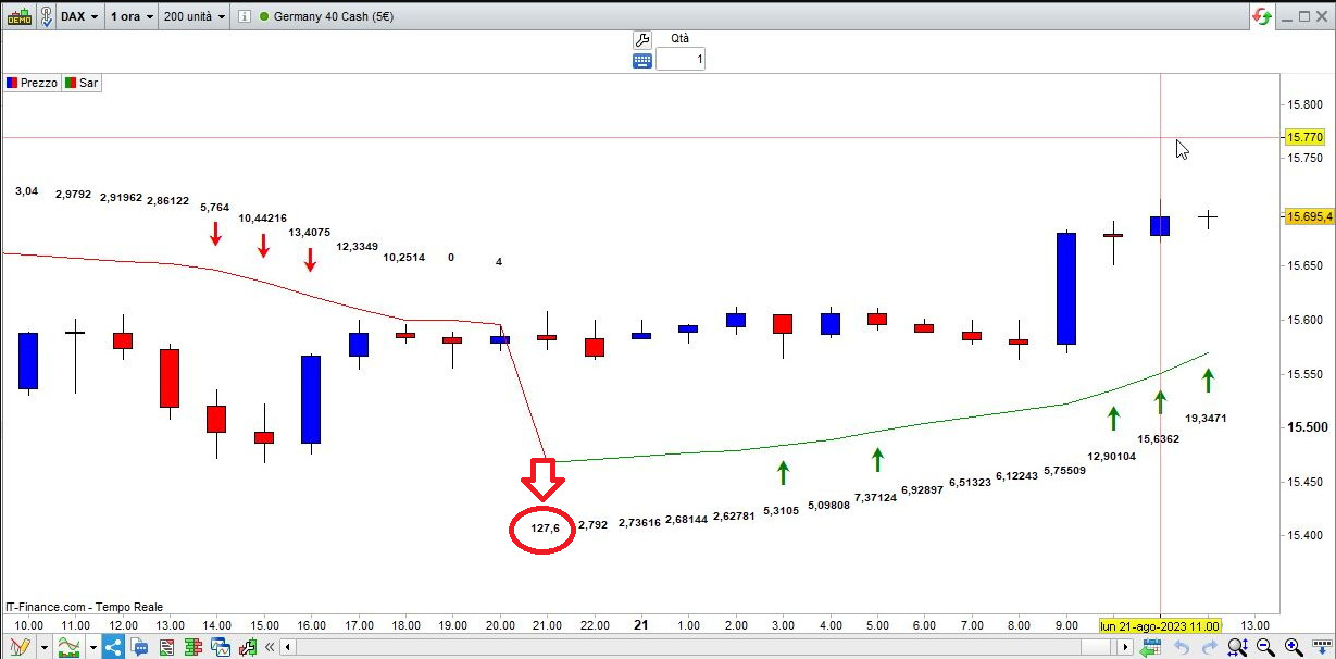 Se podría hacer que no se señale la primera cambio de tendencia de la sar para no ver esa distancia ni flecha solo que cuente a partir de la primera sar. Un saludo