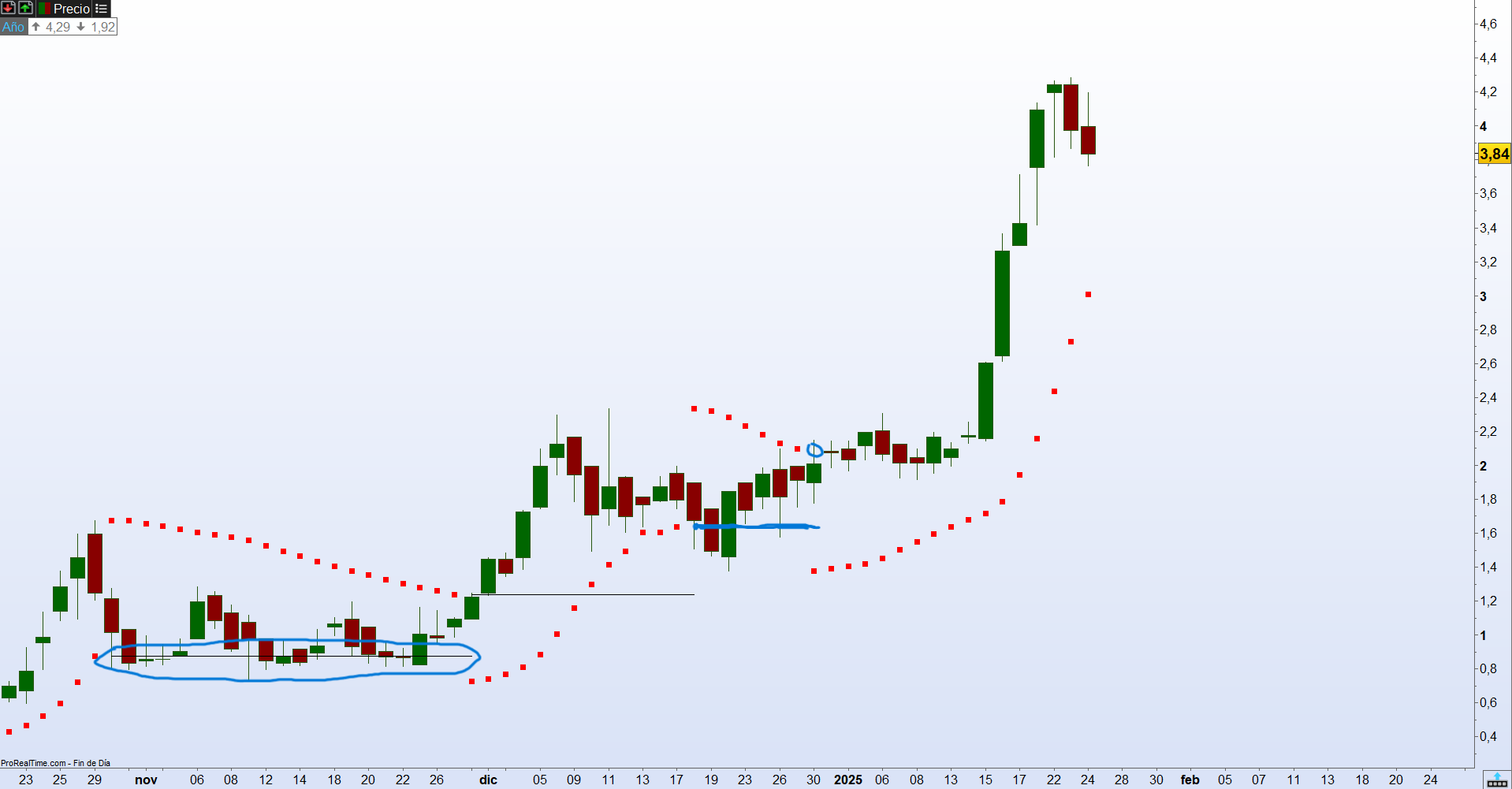 Buenas tardes el indicador no esta completo, ya que hay veces que lo hace cuando no deberia y veces que deberia hacerlo y no lo hace, (adjunto foto). El indicador tiene que señalarme una linea horizontal en el momento y el punto que el precio rebasa la parabolica sar y dejarme la linea fija en ese precio hasta que el precio vuelva a rebasar la psar otra vez y borre la linea anterior y deje únicamente la nueva. Un saludo