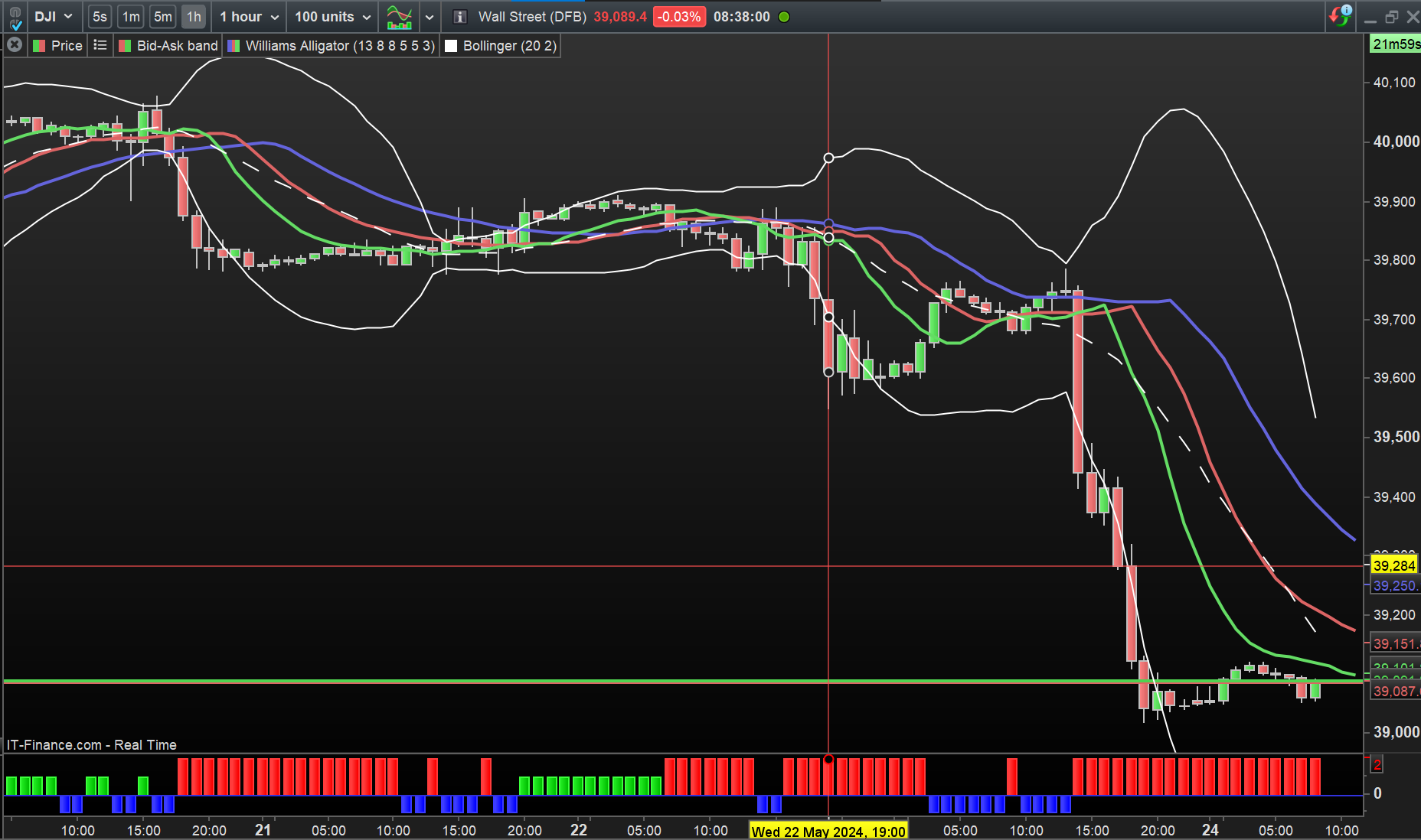 You post a screenshot of exact same settings = Candlestick, DJI, TF 1 Hour over 100 units so we can see what yours are like?