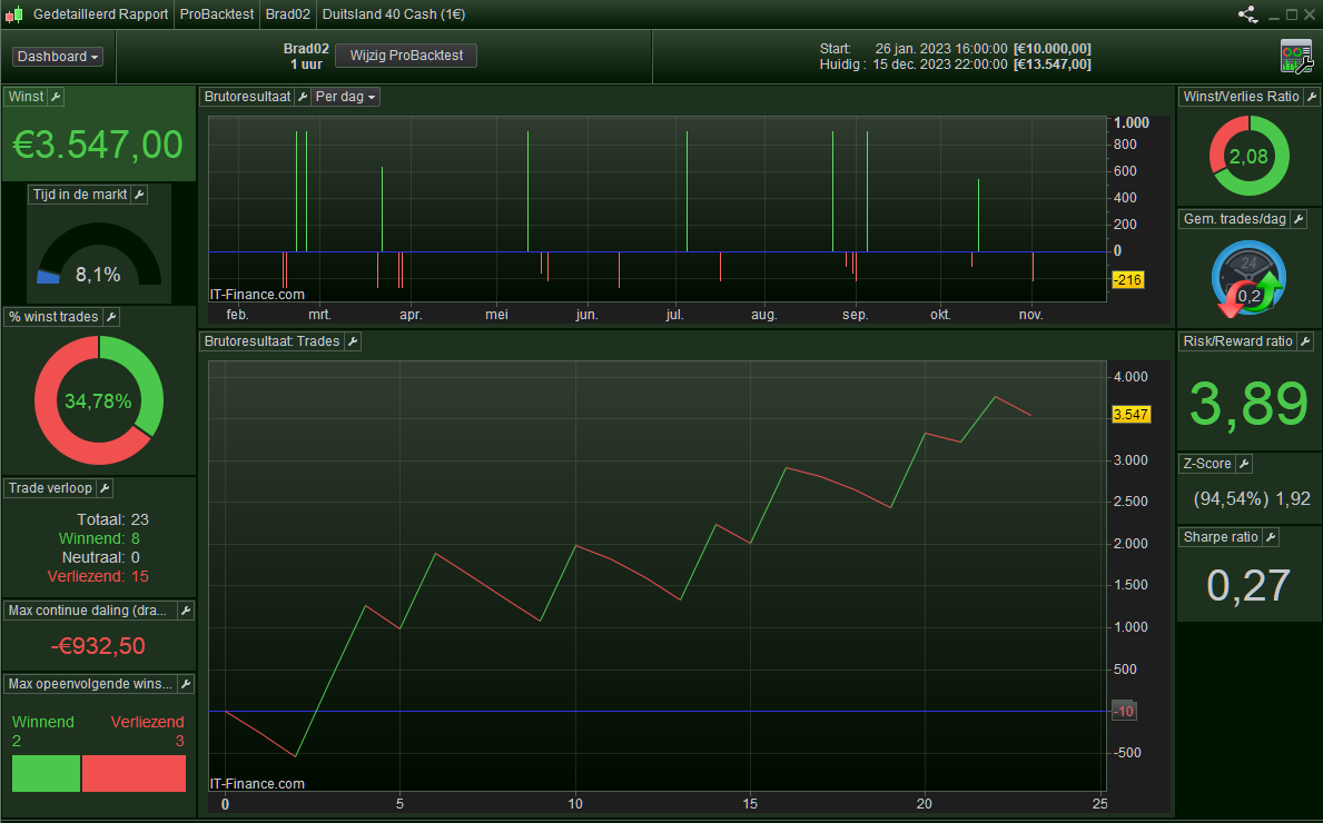 I used Dax [Germany 40 Cash] on IG for the backtesting.