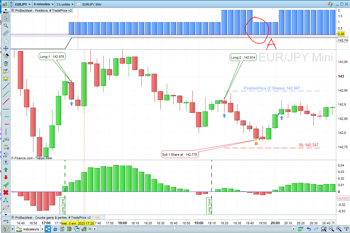 you can see the SL is not reached but I have an exit at 142,778 ? and they sell only 1 shares, why not 2 shares (Totaly exit)