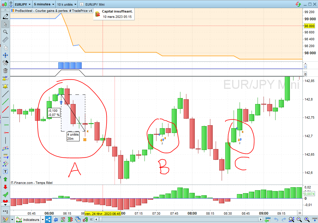 The screenshot with the circle shows entry and exit at the same price of 37120 … is that what we are discussing? If Yes, what code was driving that trade entry and exit?