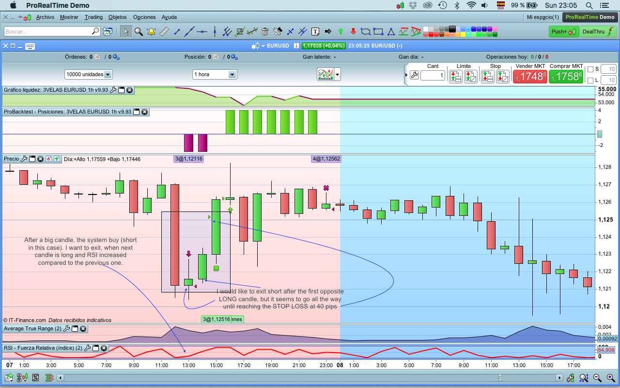 I have a problem with coding an exit for short and long orders with the RSI, or based in the “colour” of the candle.