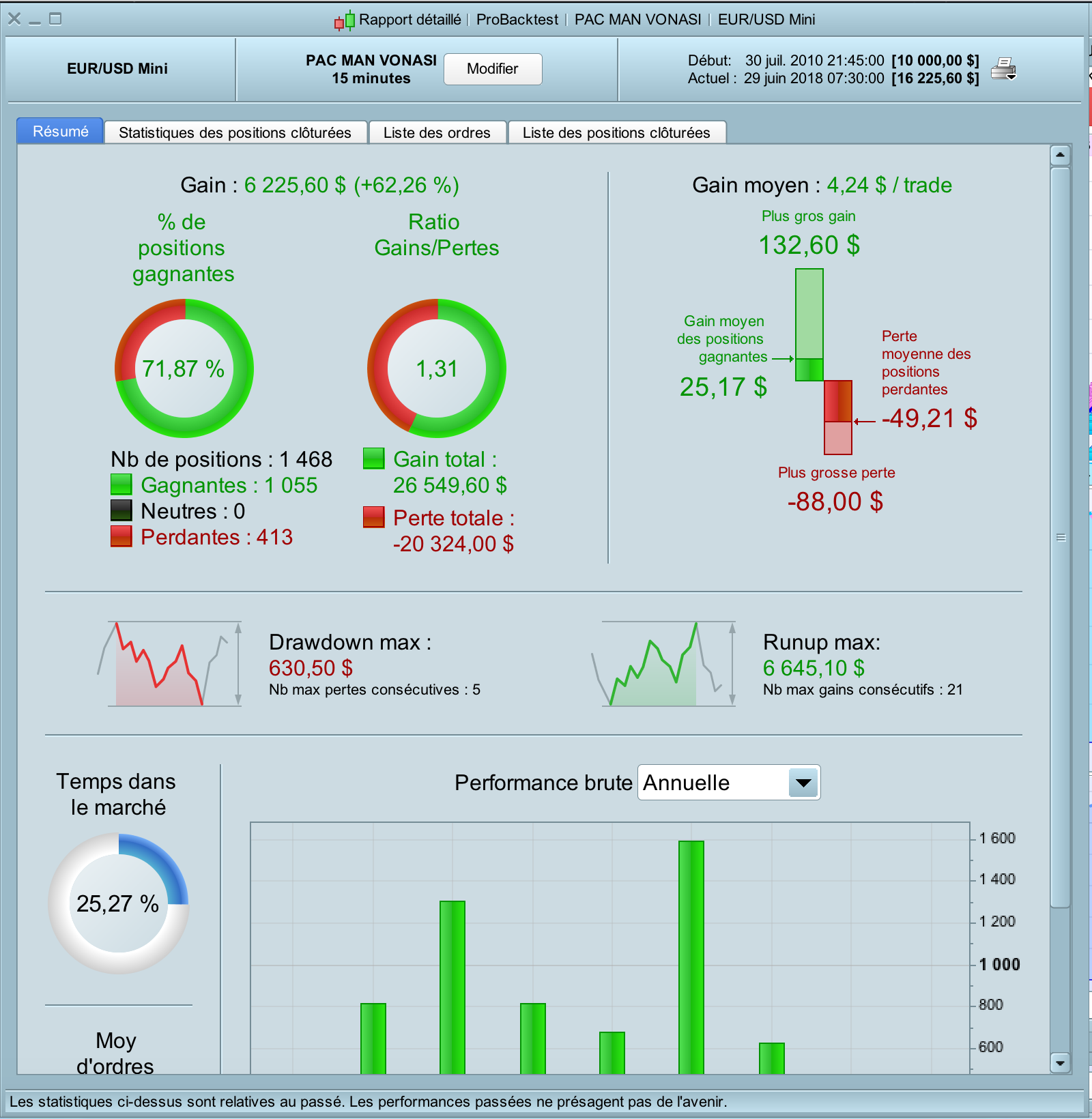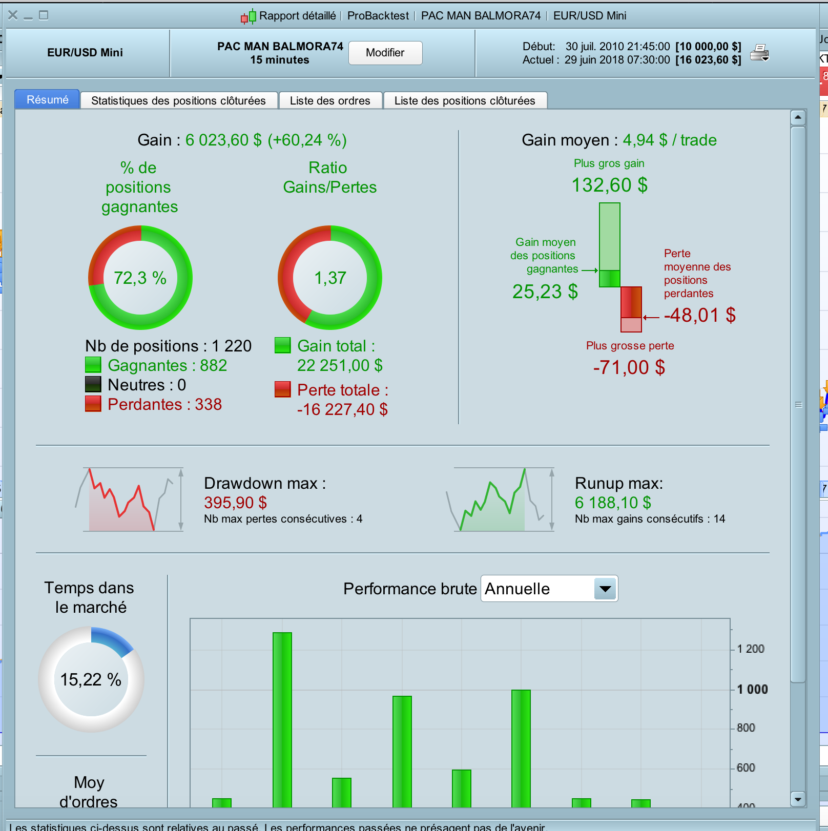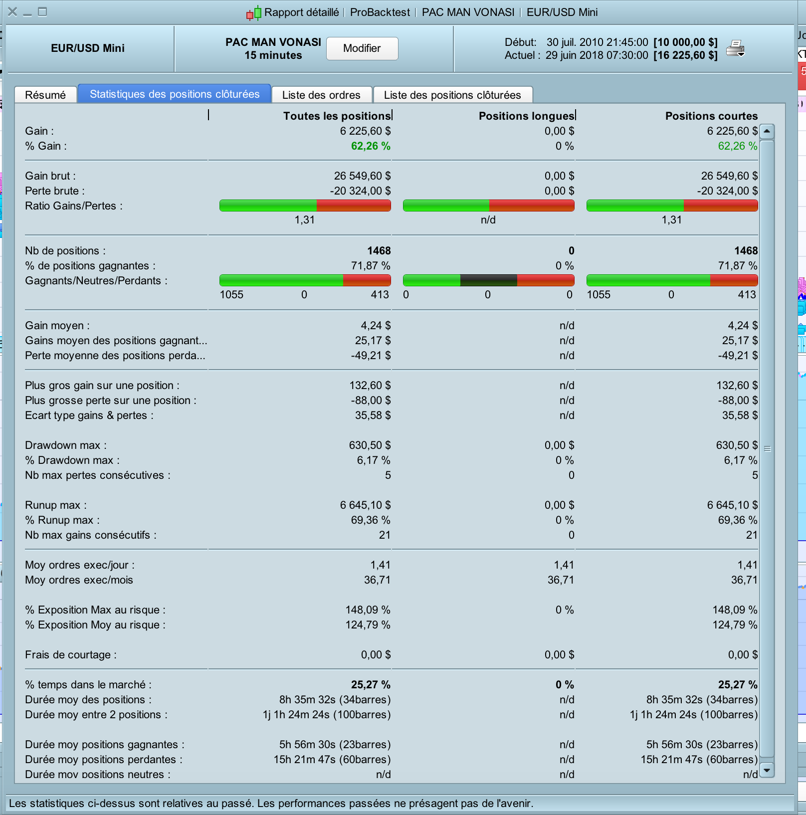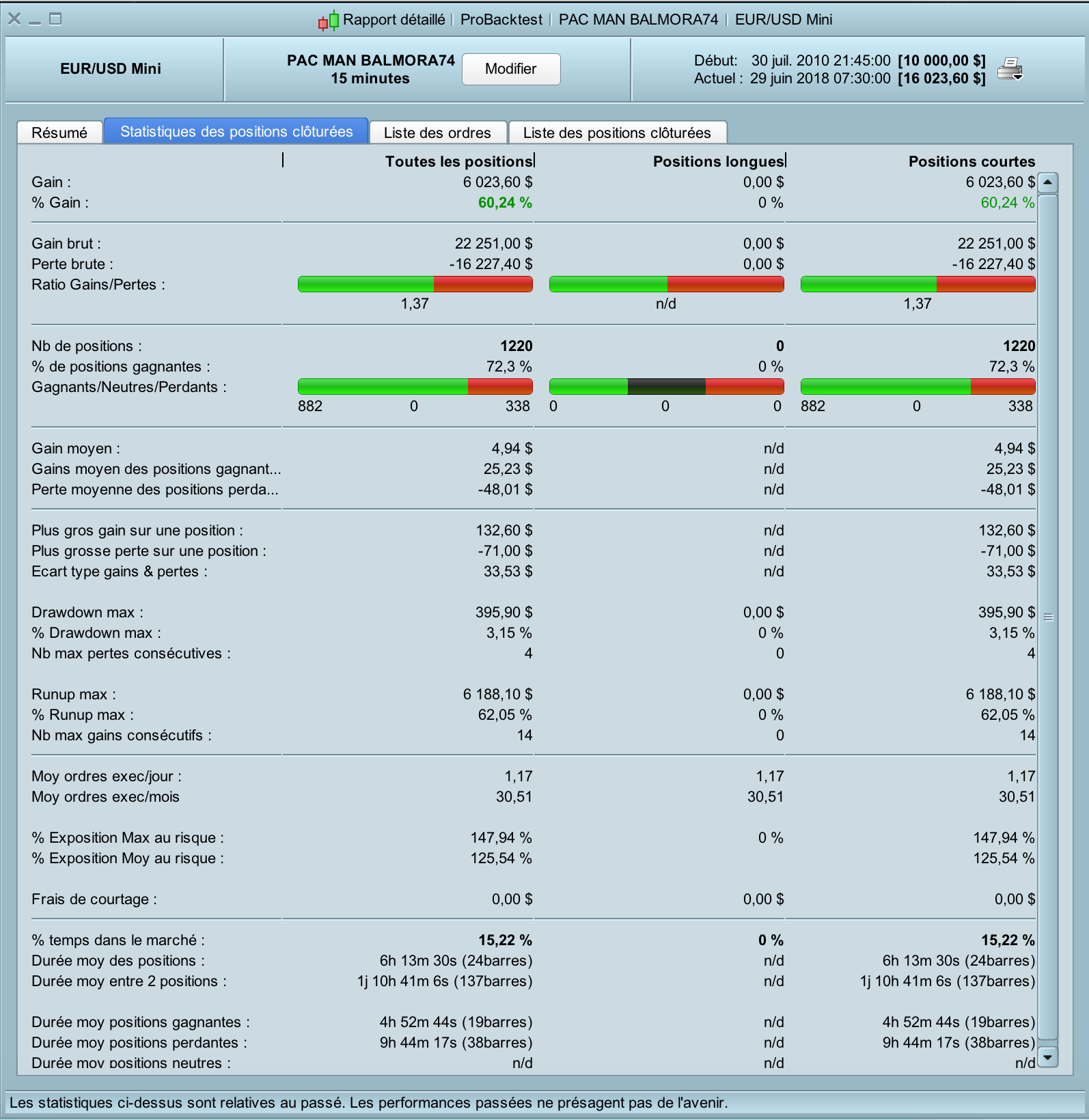I tried to adapt the code on other timeframes and currency pairs but without success for now ! Its seems to work only on EUR / USD M15….