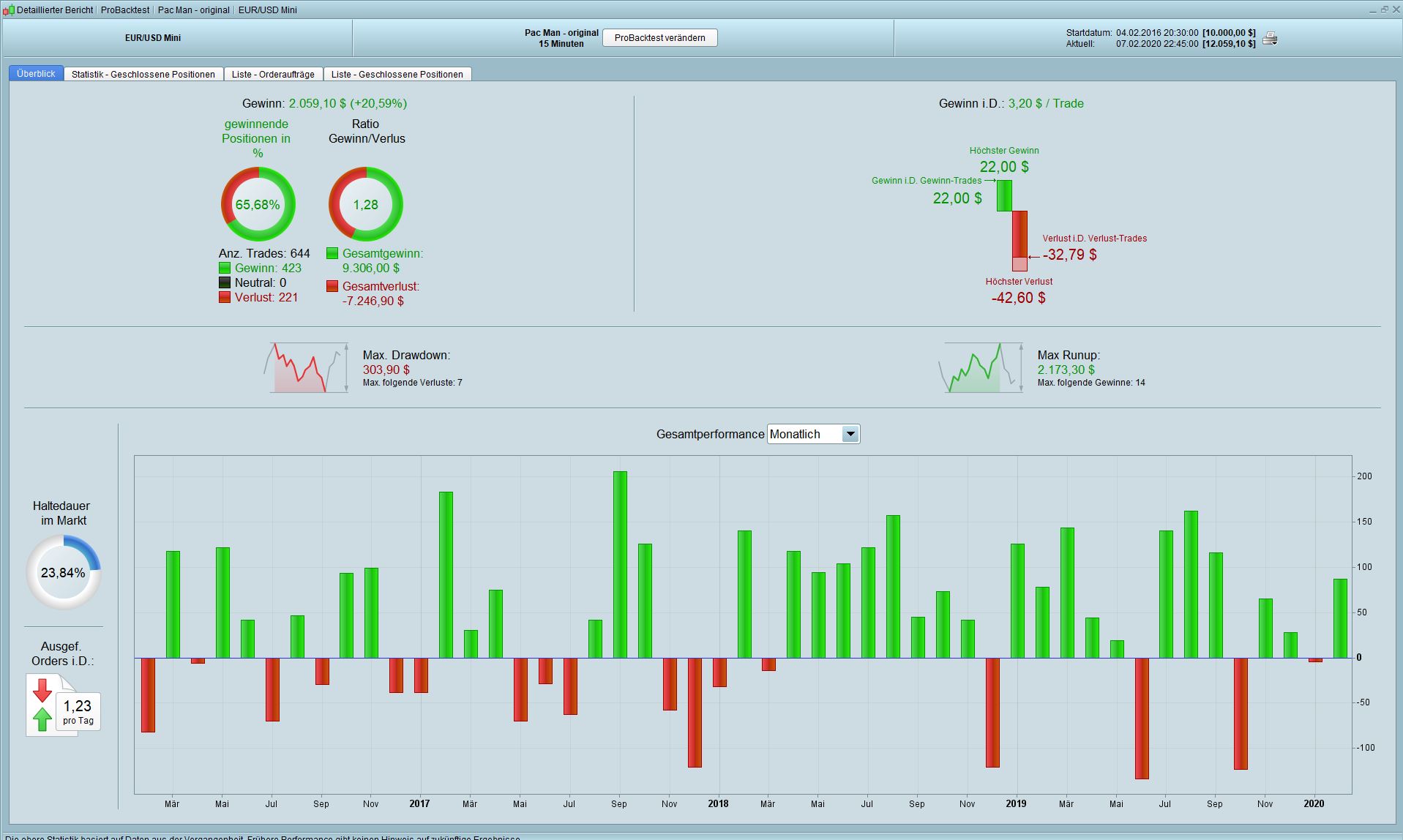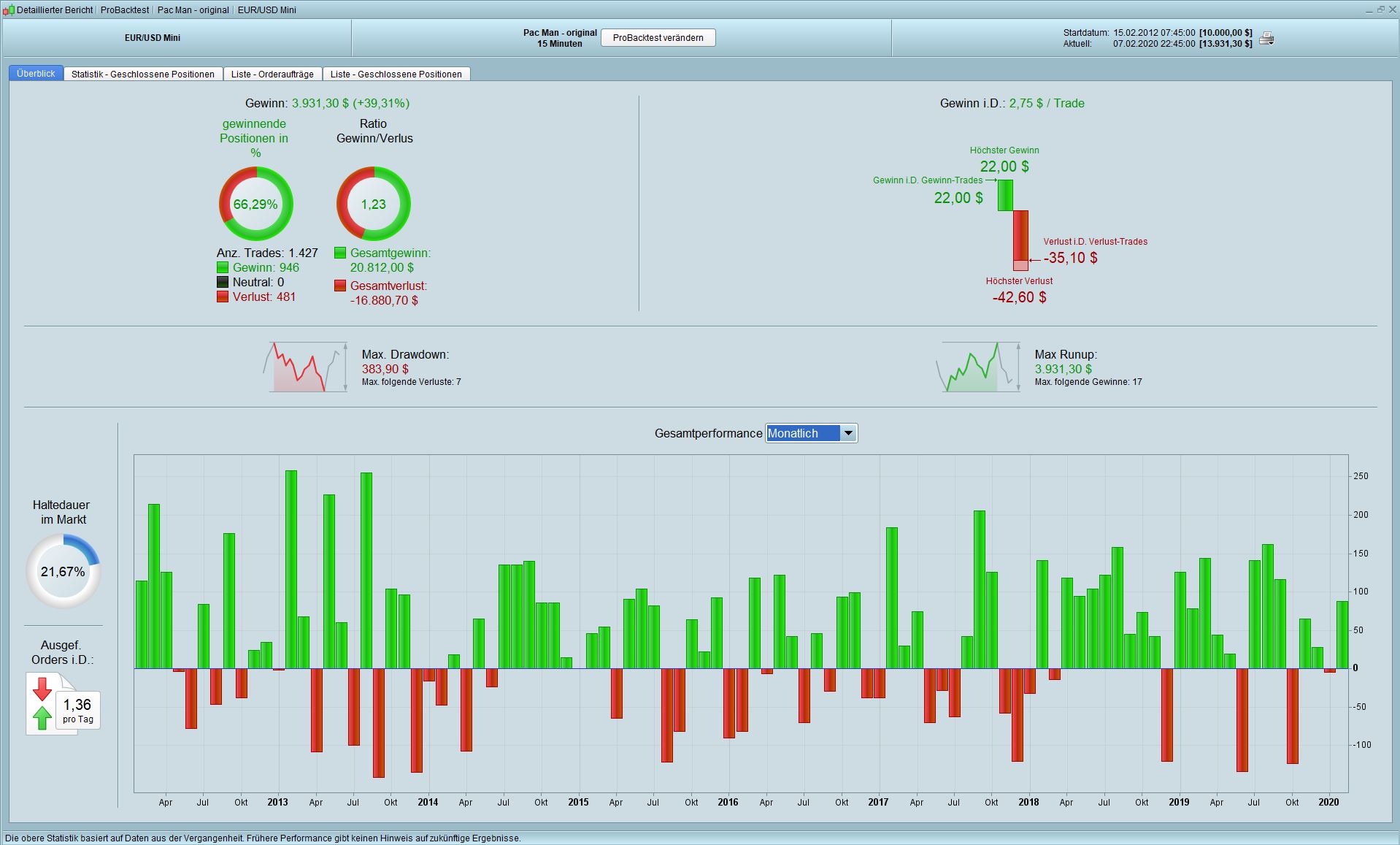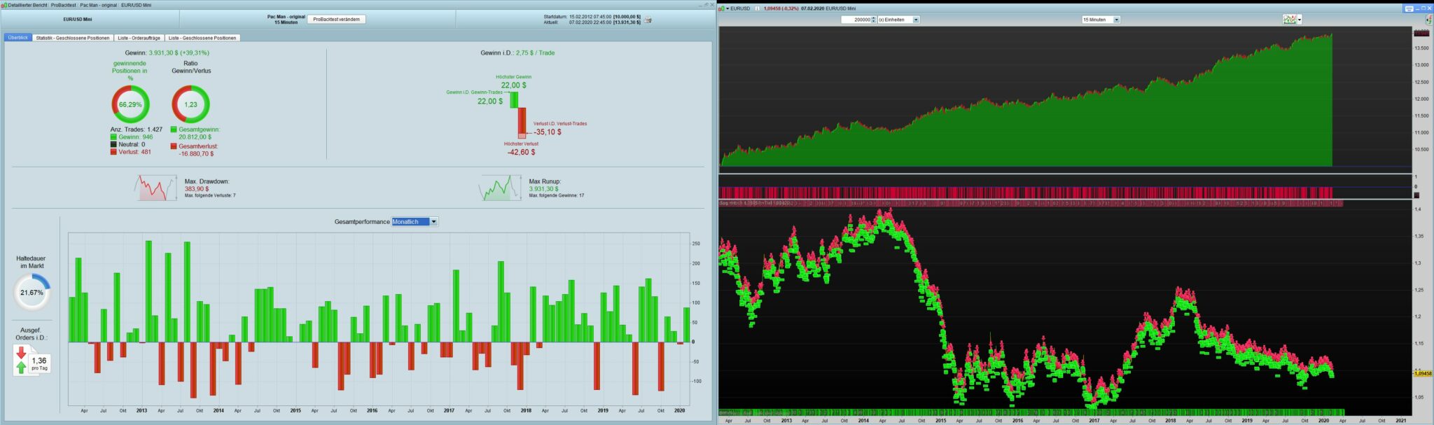 NB: I am using a spread of 0.7. I have several versions of PacMan running in demo mode and they all look successful so far but that one somehow seems to generate the best balance between profit/trade, winning ratio, drawdown and regularity. I am just wondering if that remains successful before 2018 in a different EUR/USD context…