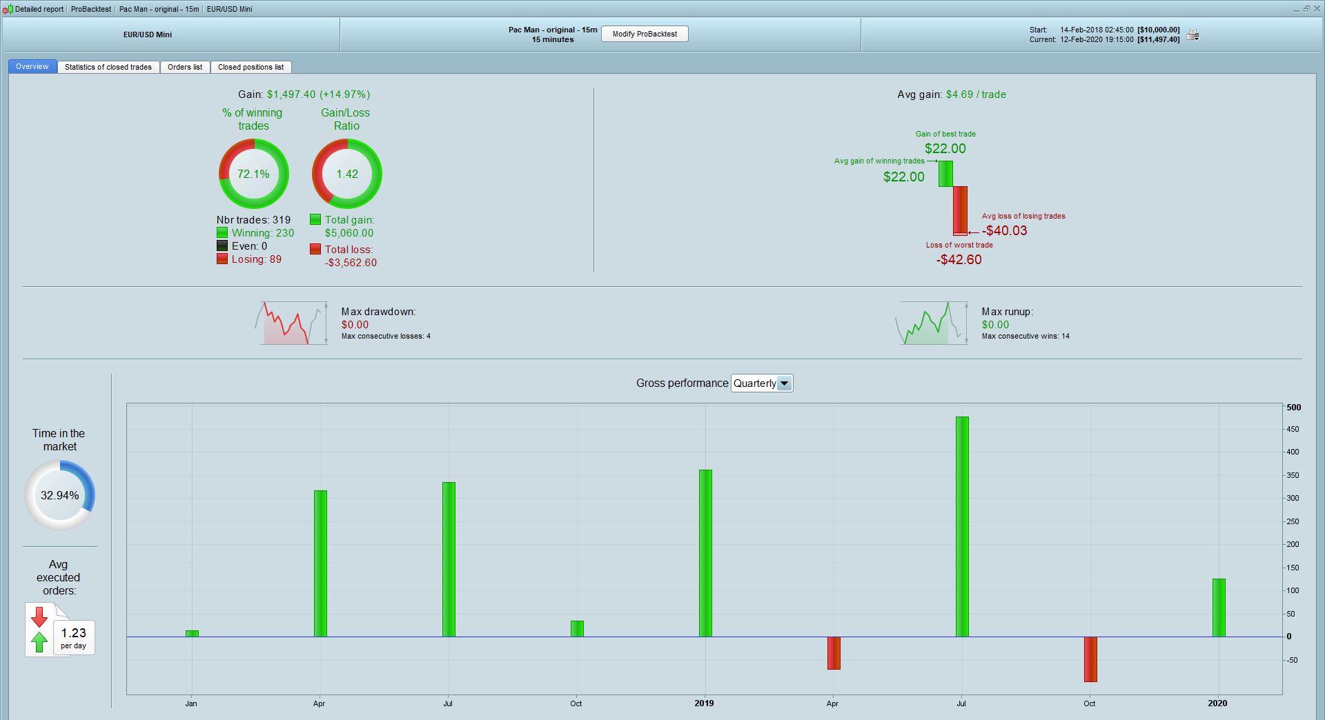 So below strategy i have run between 01/09/19 to early Dec/19 and it generated slightly more than 3% excl. gain on fees (i did pause it from time to time, result is based on 37 trades). I can say this was the only profitable strategy i had during that politically movemented period.