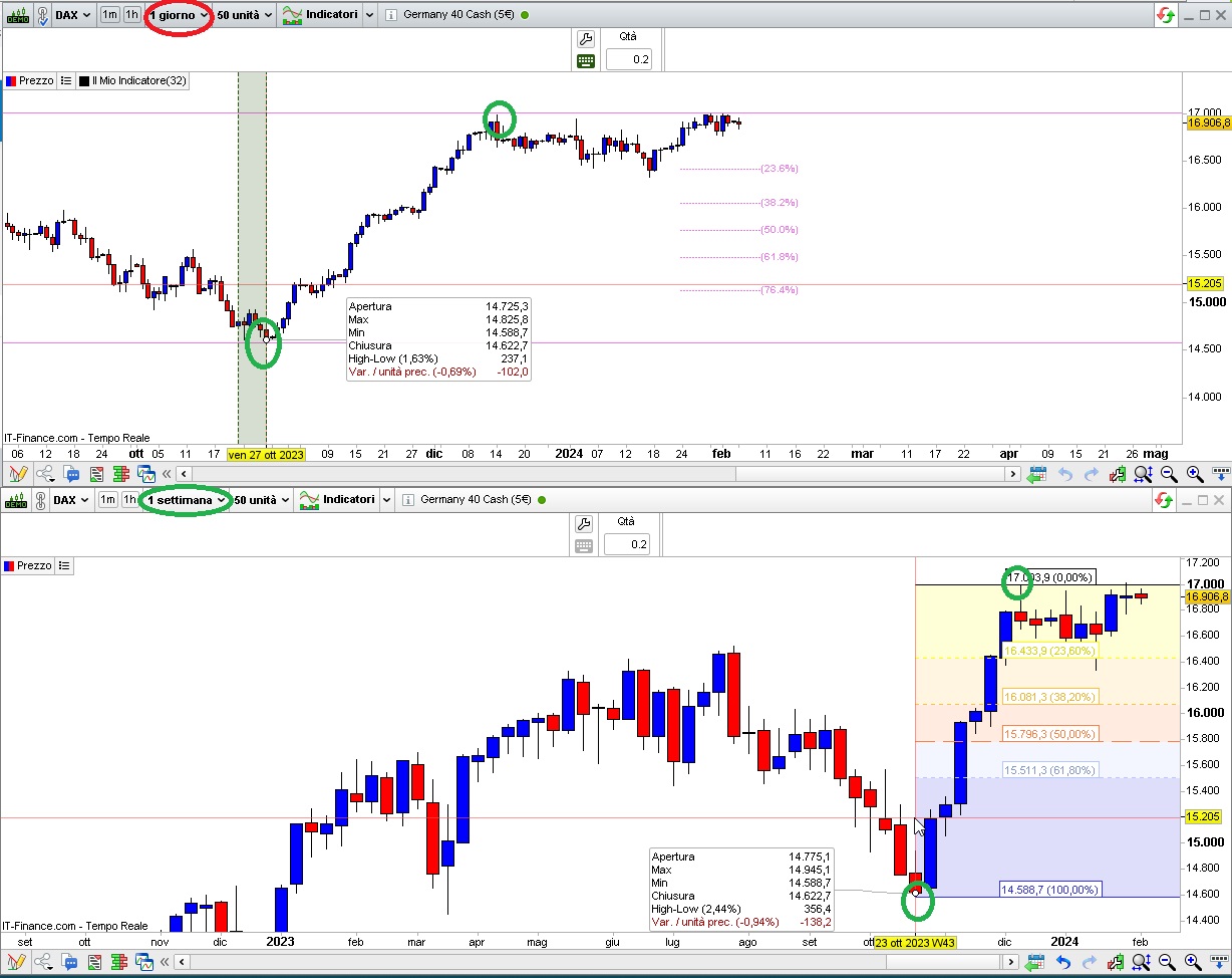 Add this indicator on your Daily price chart. It will plot weekly FIBO levels according to the number of weekly periods you selected: