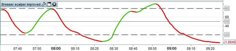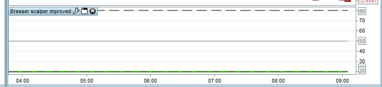 With the Bressert scalper improved, the signal disappears at certain times and the completed turn is no longer visible. Only a flat line remains.