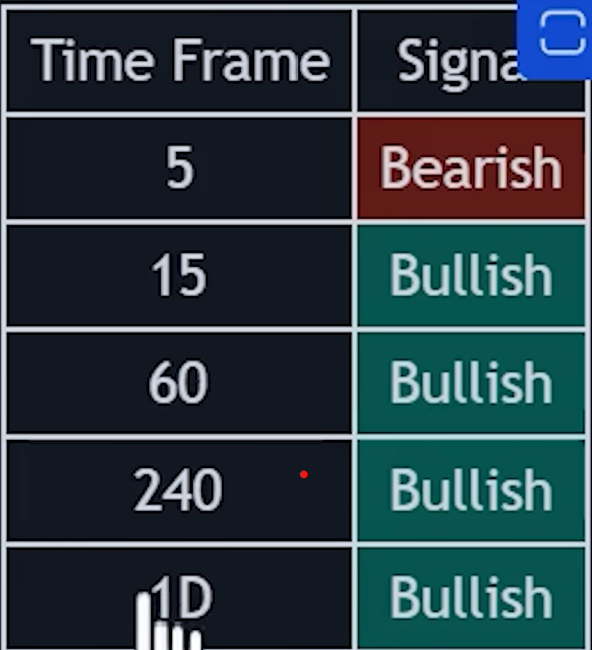 return (myzlema5+volatil5)as "zlema5+vol5" Coloured("Red"),(myzlema5-volatil5) as "zlema5-vol5" Coloured("Red"),(myzlema15+volatil15)as "zlema15+vol15" Coloured("Green"),(myzlema15-volatil15) as "zlema15-vol15" Coloured("Green"),(myzlema1H+volatil1H)as "zlema1H+vol1H" Coloured("Blue"),(myzlema1H-volatil1H) as "zlema1H-vol1H" Coloured("Blue"),(myzlema4H+volatil4H)as "zlema4H+vol4H" Coloured("Yellow"),(myzlema4H-volatil4H) as "zlema4H-vol4H" Coloured("Yellow"),(myzlema1D+volatil1D)as "zlema1D+vol1D" Coloured("Purple"),(myzlema1D-volatil1D) as "zlema1D-vol1D" Coloured("Purple")