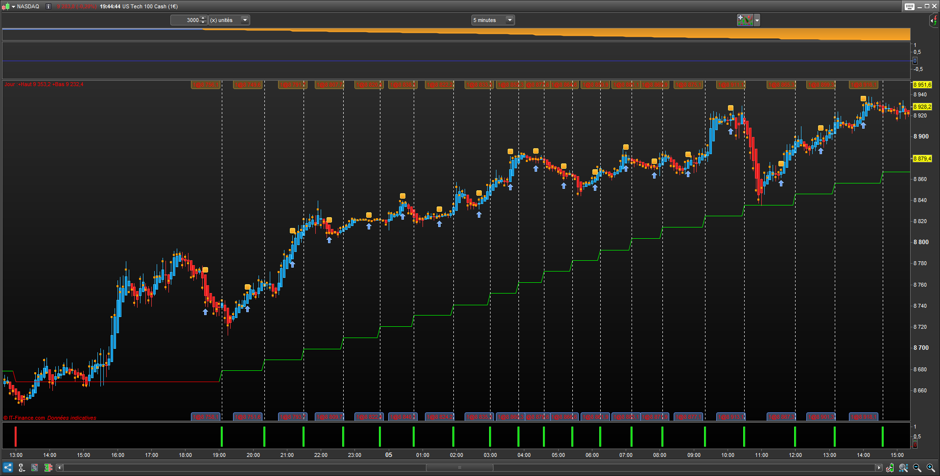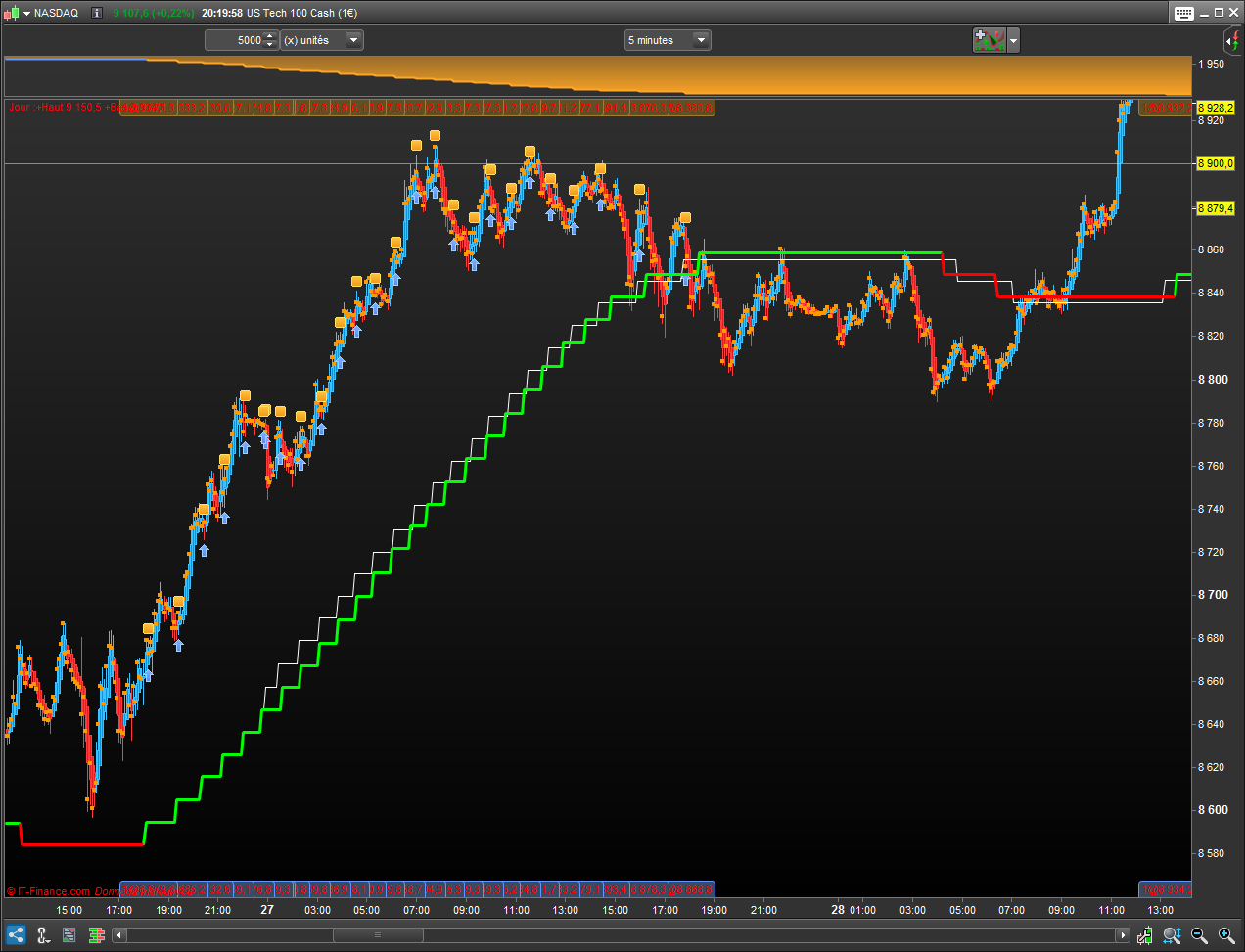 Oui en effet un preloadbars=0 fonctionne. Oui c’est ça… Je vais tout de même réfléchir à un moyen de commencer tout le temps au même moment sinon selon l’endroit où débute l’historique les signaux de trading seront différents, ce qui n’est pas l’idéal pour une stratégie automatique… Peut être preload suffisamment d’historique et faire commencer l’indicateur sur un signal caractéristique évident, je sais pas je vais voir mais en tout cas merci beaucoup pour ces réponses.