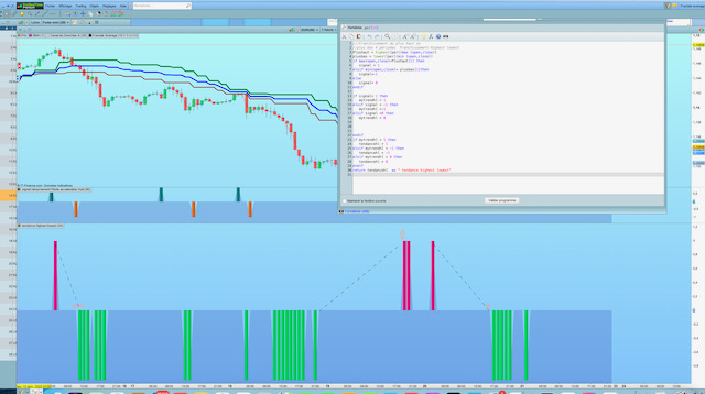 Je souhaiterais avoir de l’aide sur le graphique ci-joint dans l’indicateur tendance Highest lowest j’aimerais qu’au premier changement de signal