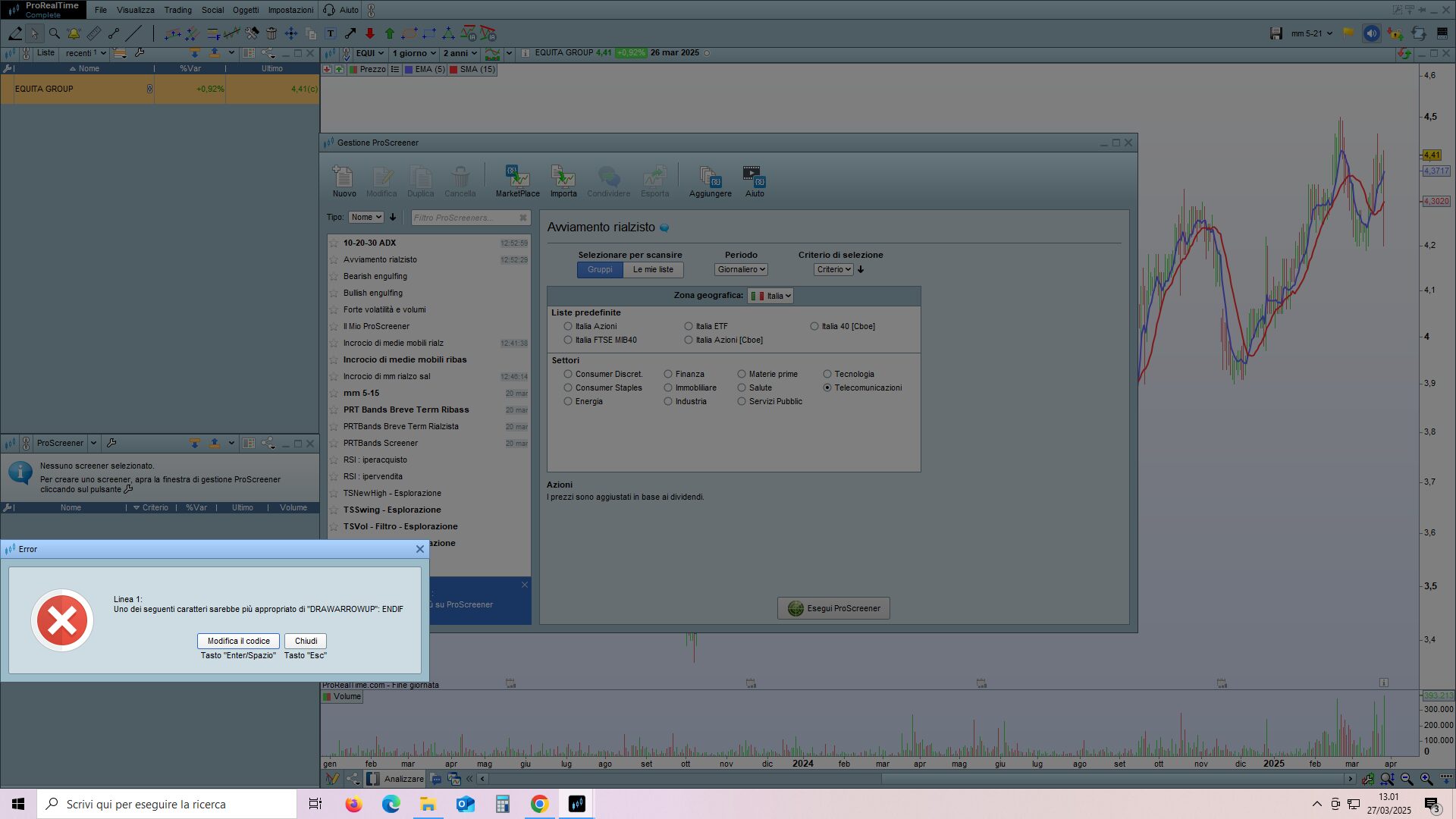 Per favore la prossima volta posta nel forum adatto, in questo caso, siccome partivi da uno screener si tratta del supporto SCREENER. Grazie 🙂