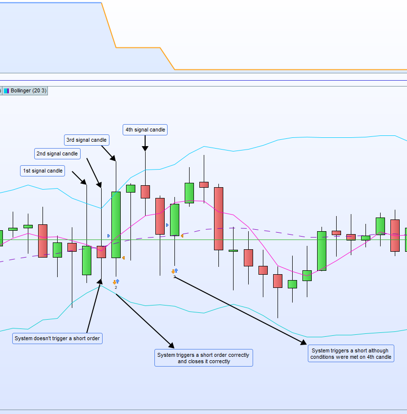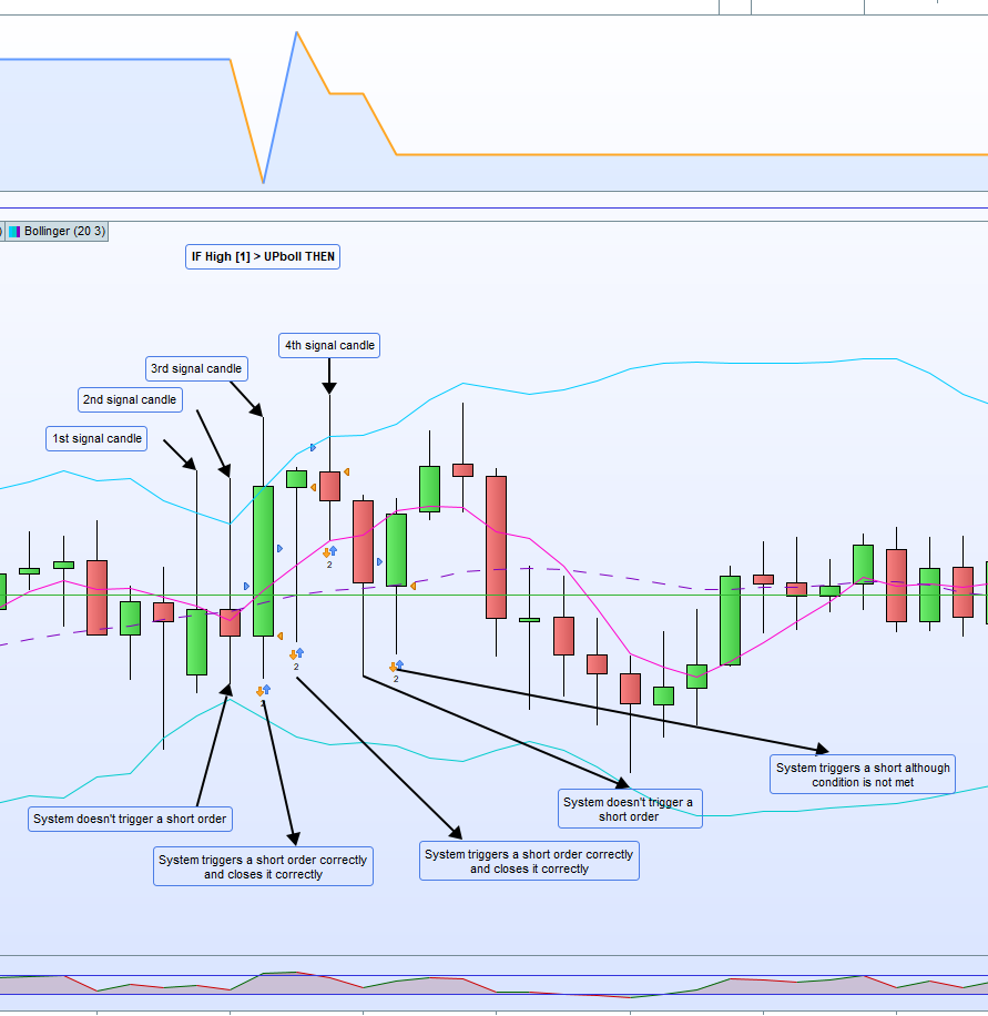 The 1st signal candle, doesn’t create a entry, because where UPboll is on that bar, the previous high { High[1] } is below that level.