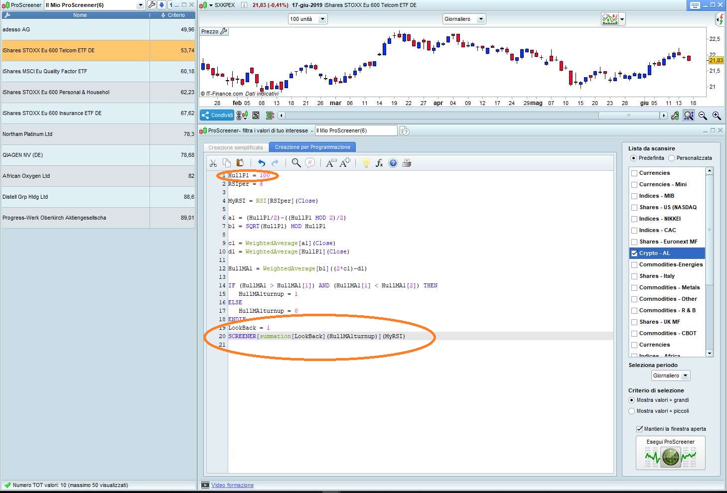 I guess now we are onto the next phase of coding … to get a Screener that gives you want you want (now we know / have proven that Hull MA works in ProScreener).