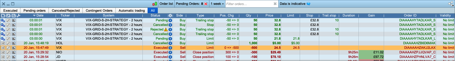 Ye I did read up on LIMIT and STOP order. However, the purpose of the automation is to replicate my manual process where I set up a limit order in IG for $22 so this order get executed when the VIX price touches $22. The PRT document shows that the LIMIT order could be used but as it failed during the test hence I asked for your input. I will try your suggestion above and update you.