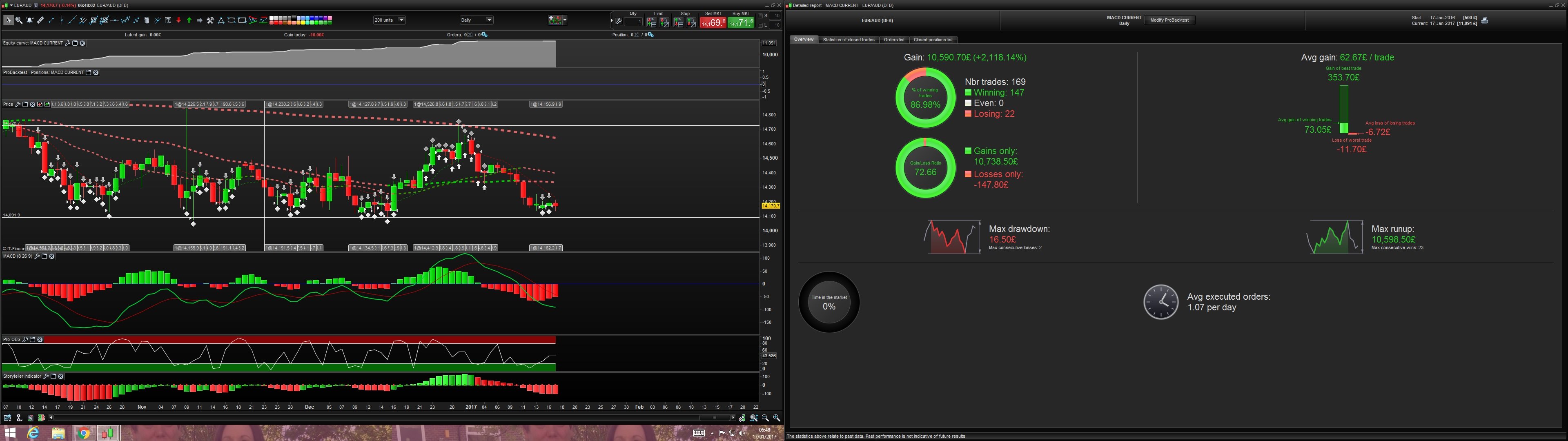 It will buy when the MACD is above 0 and Green line is above Red & Sell when below 0 and Red line above Green.