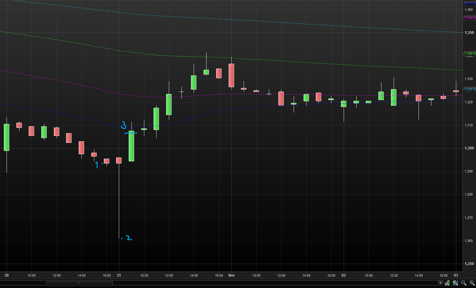 Difference between close and lowest point in first hour = -1%